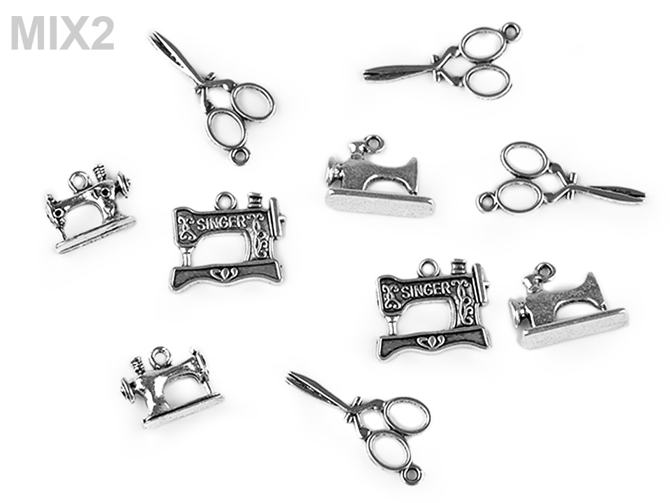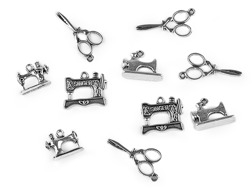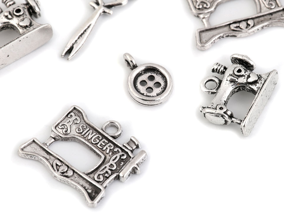 Mix kovových přívěsků jsou typickými symboly pro švadlenky a příznivce ručních pracích.