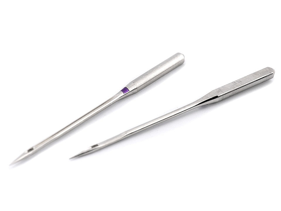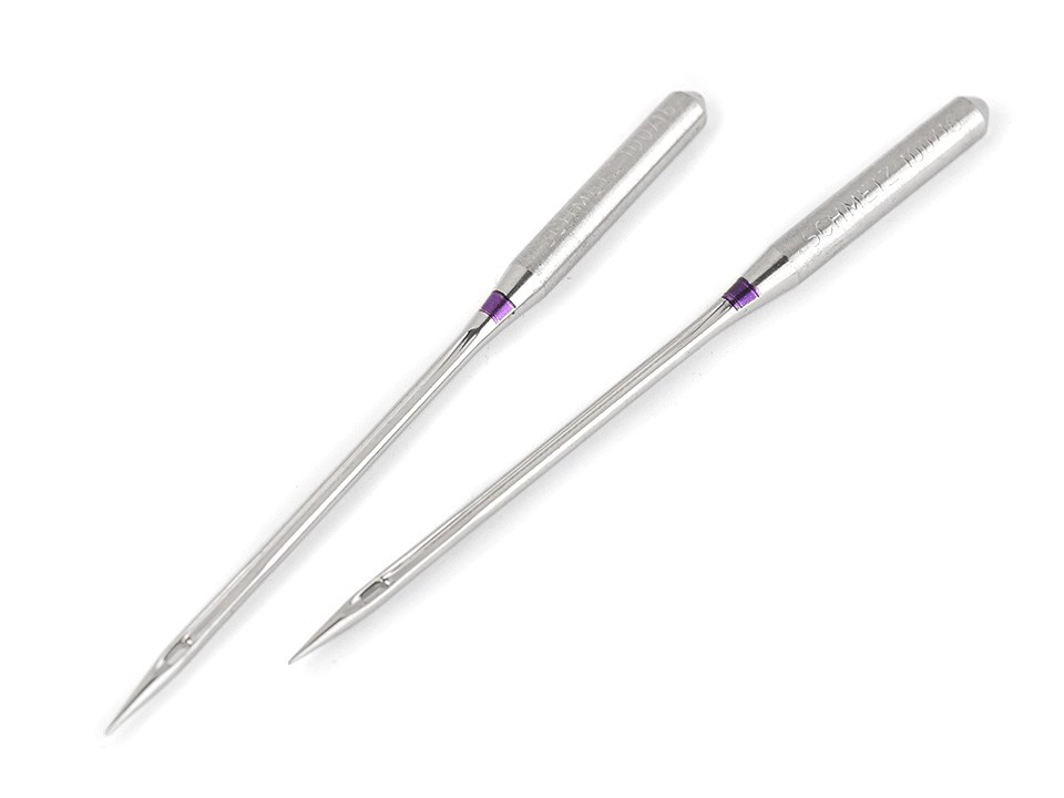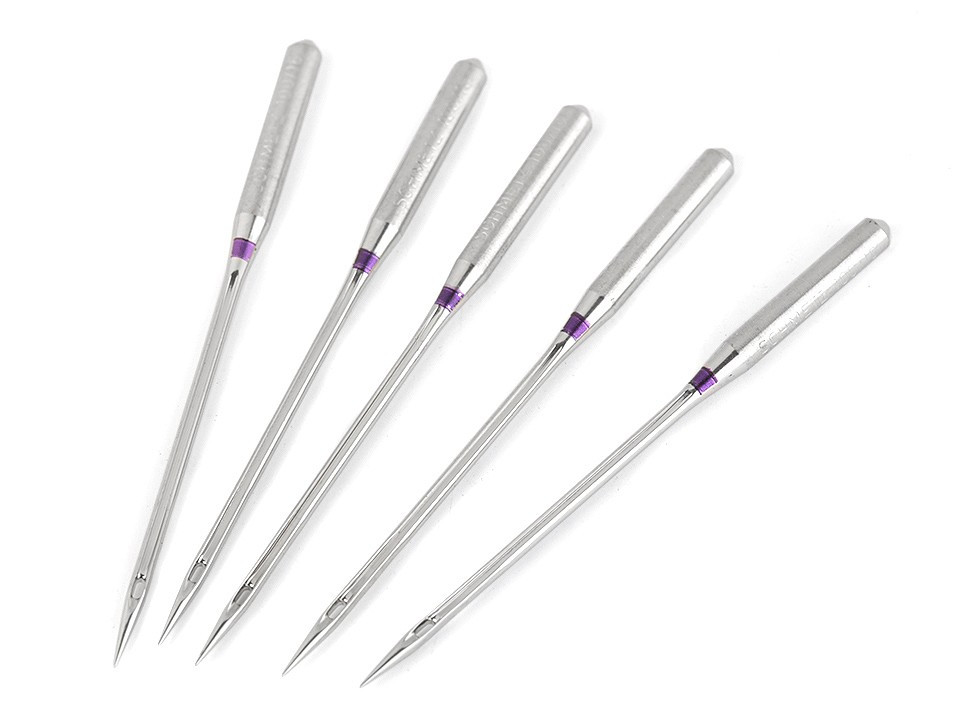 Univerzální jehly mají lehce zaoblené hroty. Tyto jehly se používají pro běžné typy látek a materiálů.