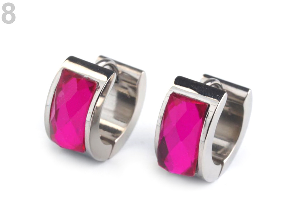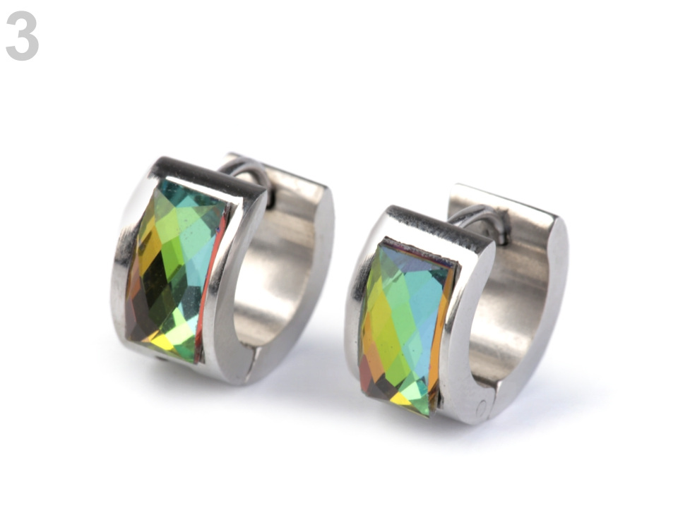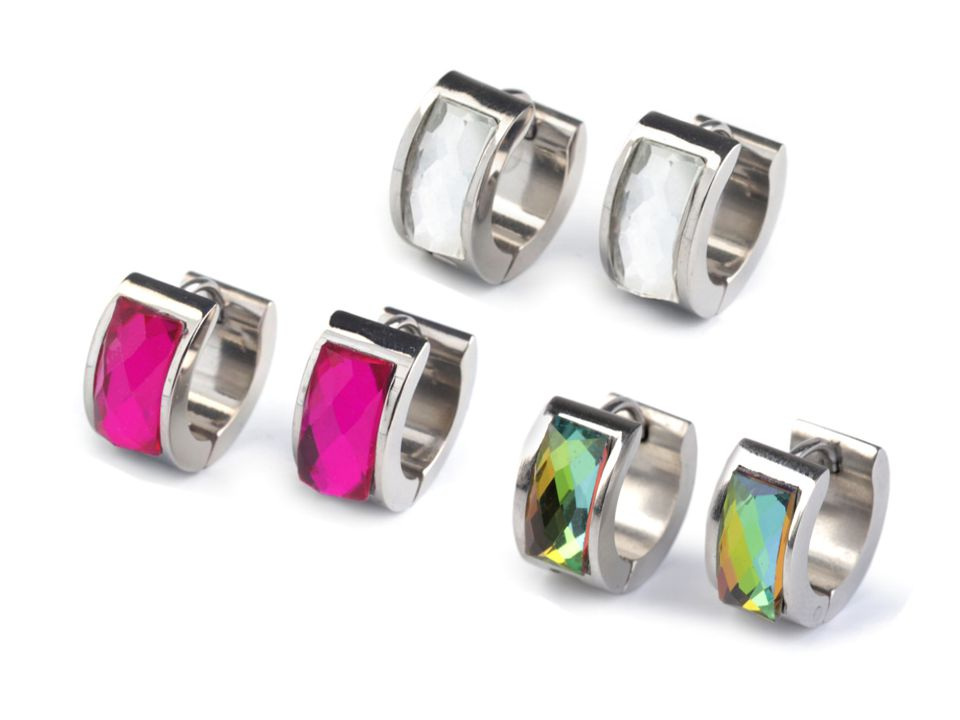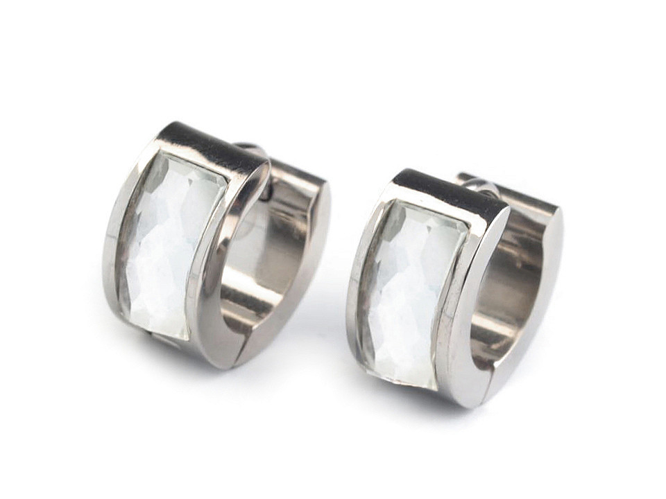 Kvalitní náušnice z chirurgické oceli jsou zdobeny broušeným kamenem. Chirurgická ocel je vhodná pro alergiky, protože je proti alergenní.