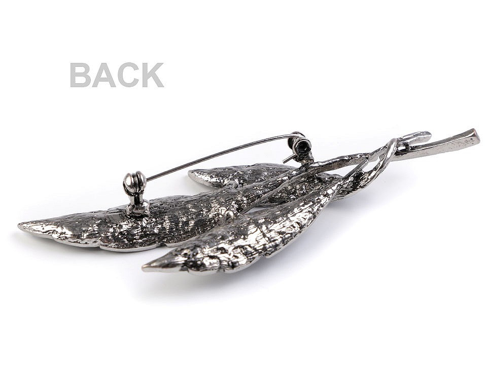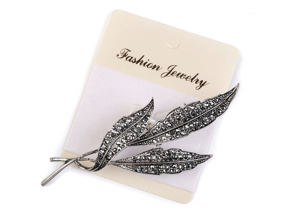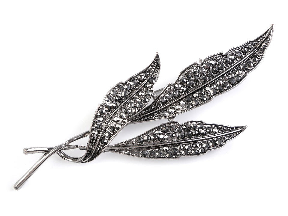 Lesklá kovová brož ve tvaru listů má velice zajímavý design. Broušené kamínky se decentně třpytí, využijete ji na slavnostní události, návštěvy divadel apod. Elegantně doladí vaše šaty, sako, kostýmek, halenku, klobouk i tašku. Můžete ji využít jako spínací sponu na šálu nebo šátek.
