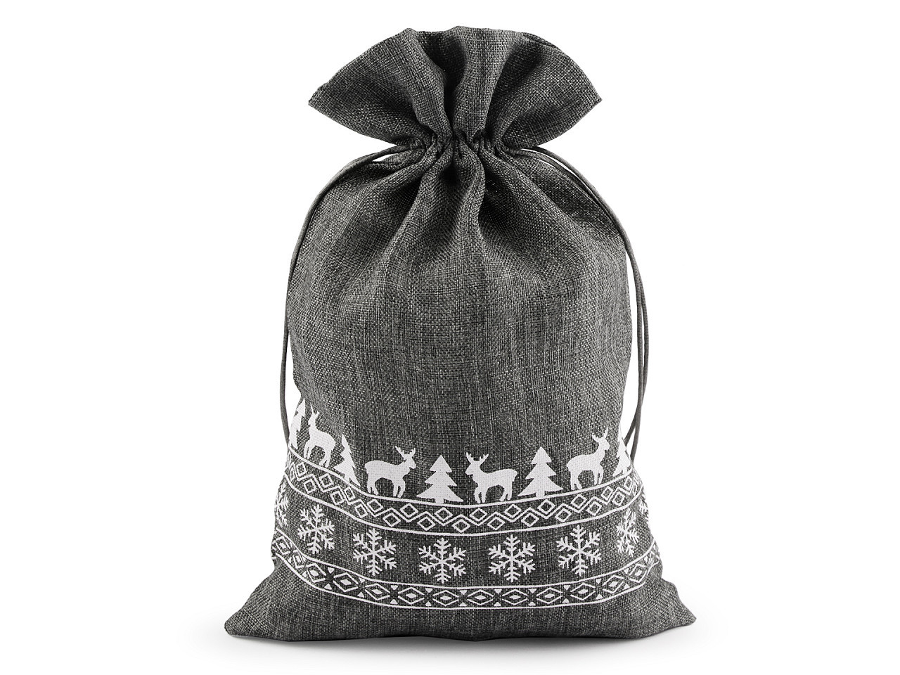 Pytlík s vánočním motivem se stahuje pomocí saténových šňůrek. Můžete ho použít na dárky nebo naplnit dobrotami na Mikuláše. Dá se naaranžovat jako vánoční dekorace.
