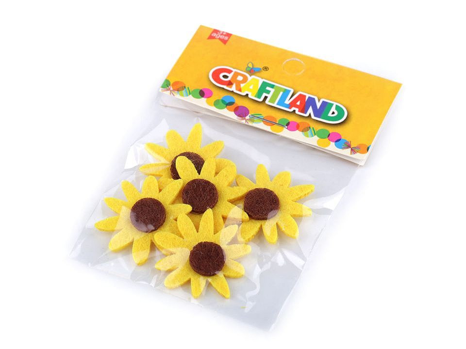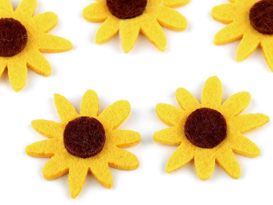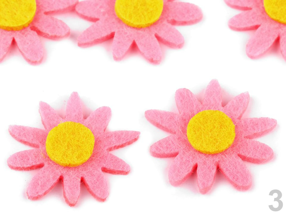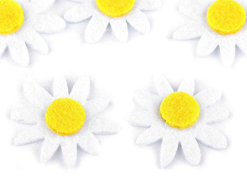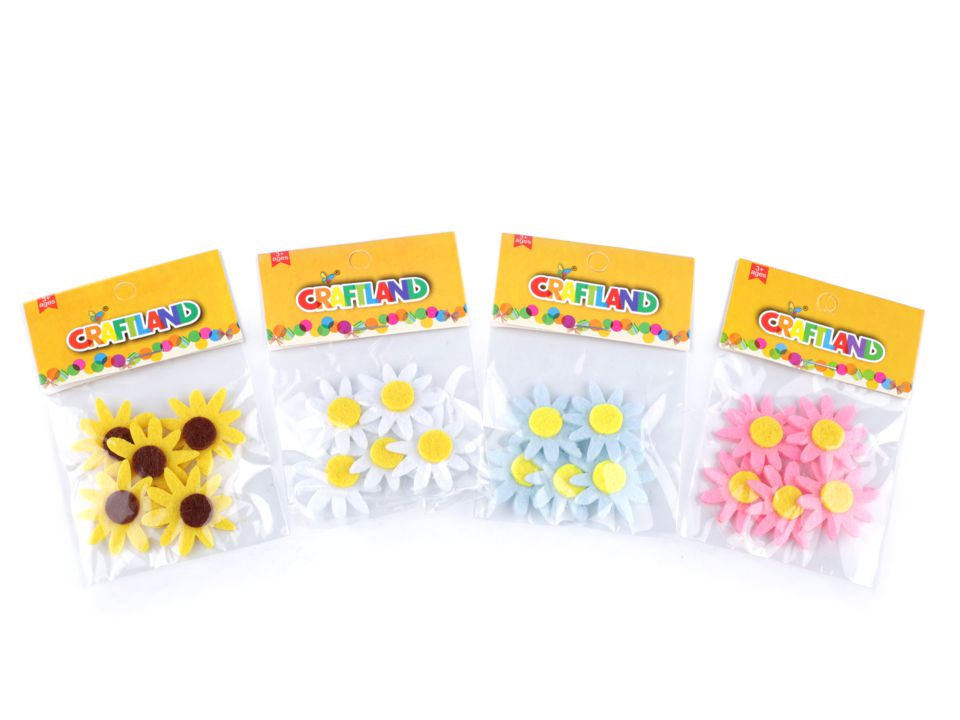 Květy z filcu / plsti se hodí k přišití i nalepení. Využijete je v mnoha výtvarných technikách.