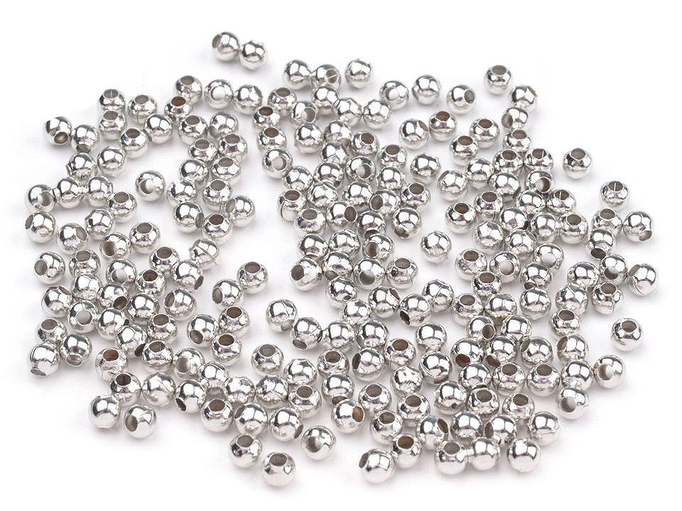Kovové korálky Ø3 mm - 4 stříbrná světlá