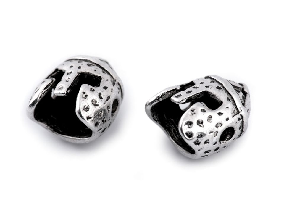 Kovový korálek přilba rytíře využijete především na navléknutí do náramku. Uvnitř má dutinu, do které se vejde korálek do průměru cca.7 mm. Průvlek je umístěný z boku.