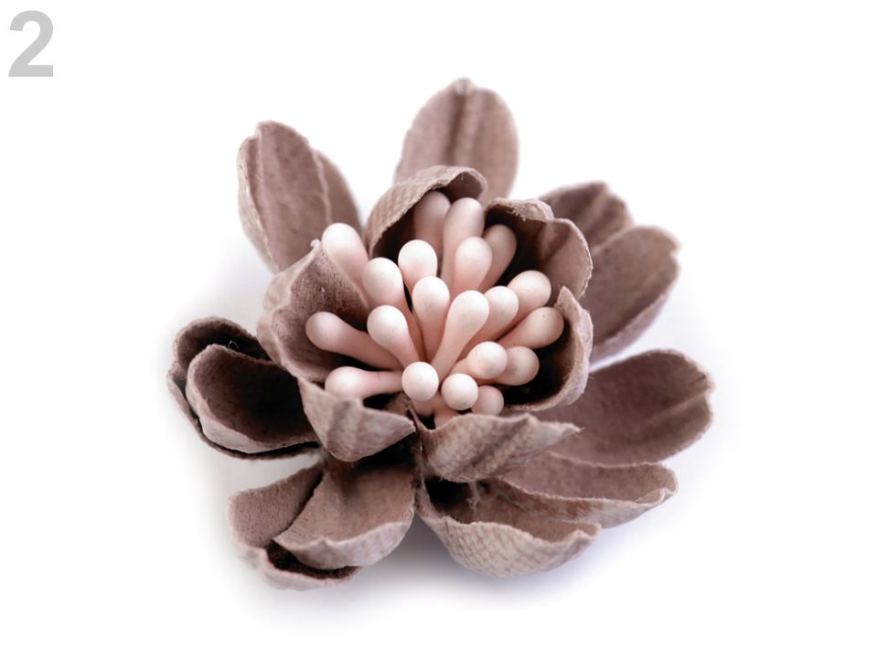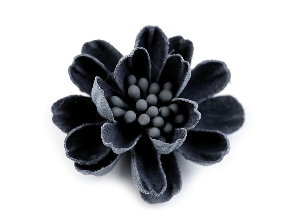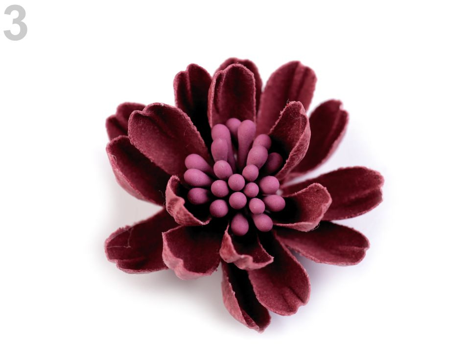 Třívrstvý 3D květ je vhodný k přišití i k nalepení. Uprostřed ho zdobí pestíky.
