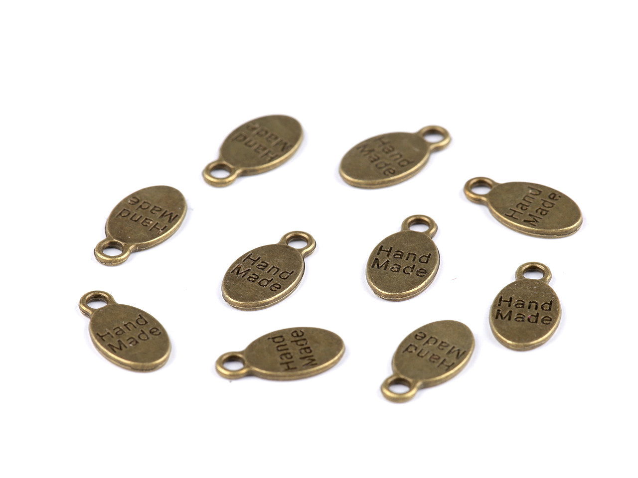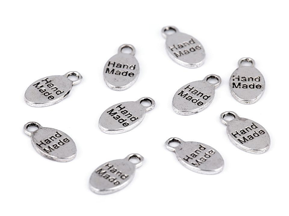 Kovový přívěsek s nápisem Hand Made má široké použití. Hodí se pro označení všech výrobků, které vznikly ručně. Ať už jsou to ručně vyrobené šperky, oděvy, dekorace, pletené a háčkované výrobky nebo třeba scrapbookingová alba. Přívěsek bude tou pravou tečkou pro označení vaší práce.