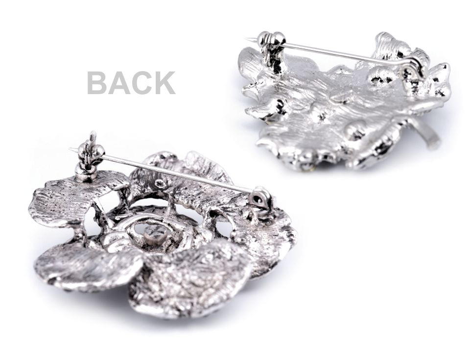 Elegantní kovová brož se díky broušeným kamínkům oslnivě třpytí. Využijete ji na slavnostní události, návštěvy divadel apod. Skvěle doladí vaše šaty, sako, kostýmek, halenku, klobouk i tašku. Můžete ji využít jako spínací sponu na šálu nebo šátek.