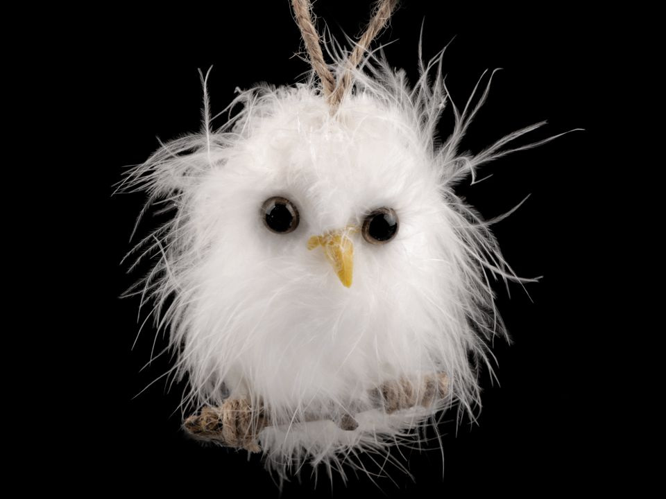 Roztomilá dekorační sovička na větvičce vám bude dělat společnost nejen během zimních svátků. Základ je vyrobený z polystyrenu a obalený peřím. Díky tomu je sova lehká. Můžete si ji pověsit na vánoční stromek, na věnec nebo na větvičky ve váze.