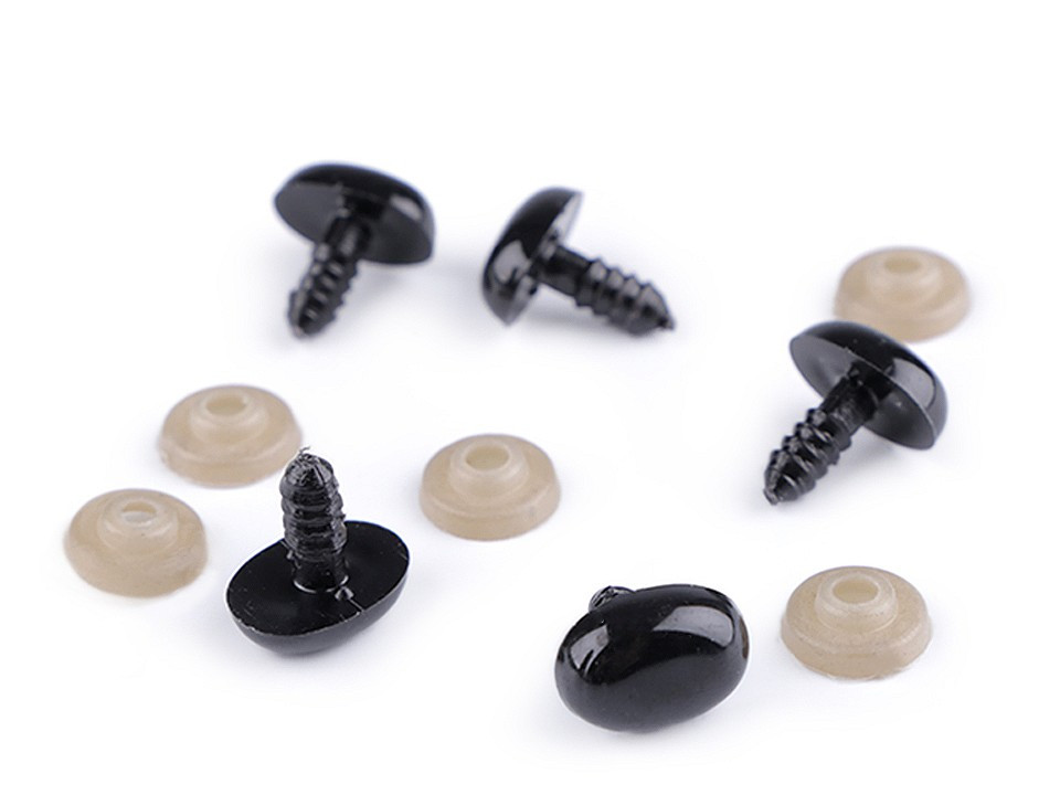 Pro snadné přichycení jsou opatřeny vrutem se závitem, který se pevně uchytí v materiálu. Z druhé strany se nacvakne pojistka, která čumáček / očička bezpečně zachytí na místo a zabrání jejich upadnutí.