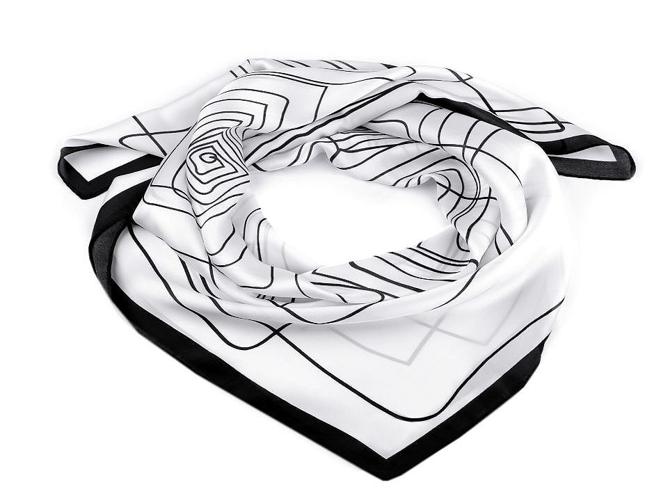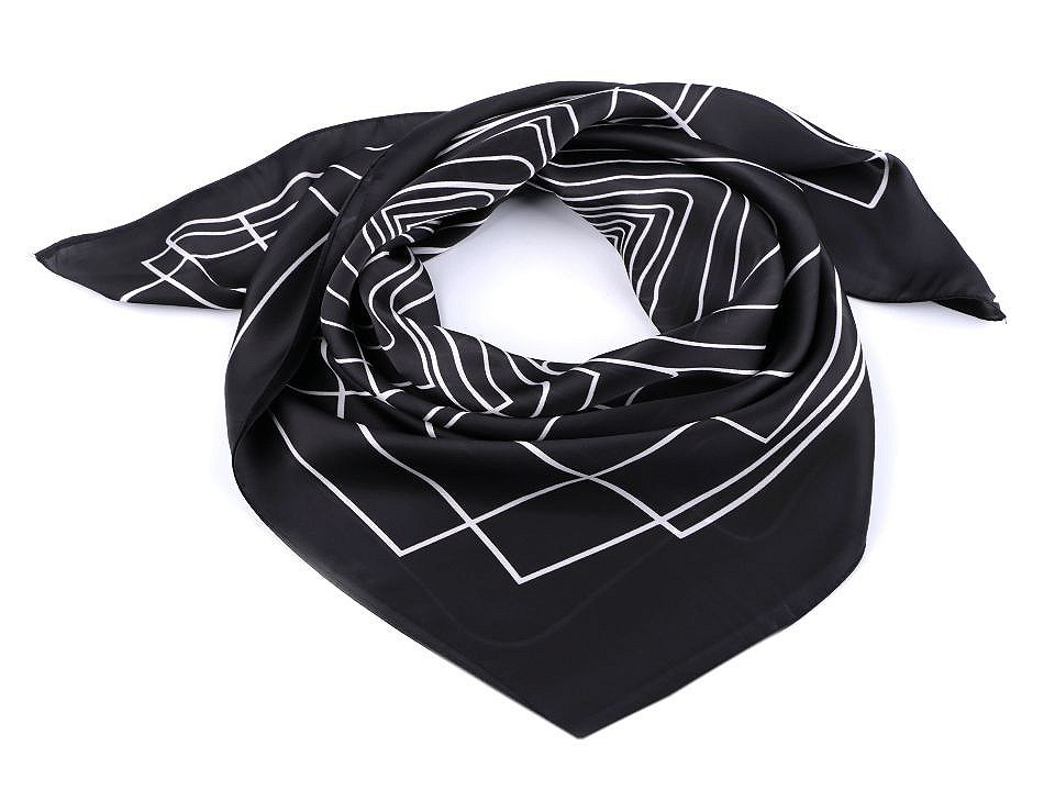 Saténový šátek s elegantním geometrickým vzorem je decentním, ale přitom výrazným módním doplňkem. Oživíte s ním jednobarevné sáčko, halenku, šaty i tričko. Příjemný materiál s jemným leskem vás bude doslova hýčkat. Čtvercový tvar, můžete variabilně upravit kolem krku.