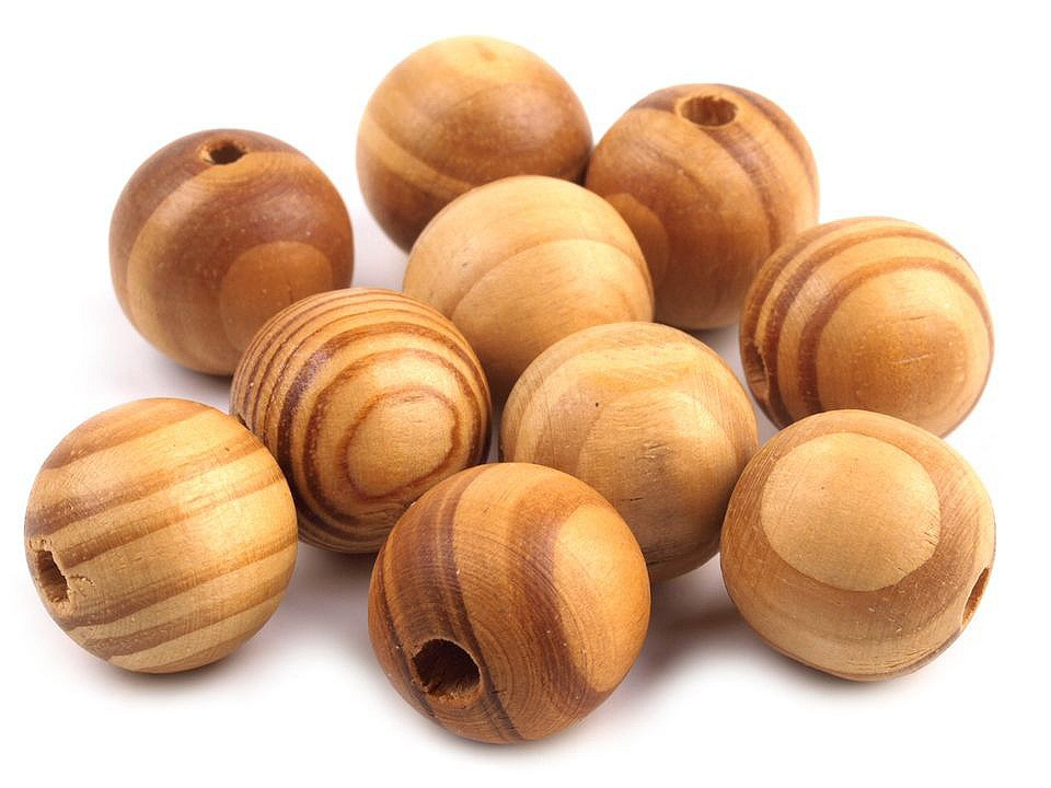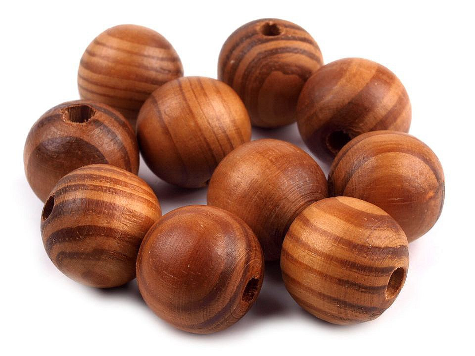 Dřevěné korálky s výraznou kresbou dřeva. Korálky nejsou lakované, ale napuštěné speciální lazurou, aby struktura dřeva ještě více vynikla. Průvlek cca 4 mm.