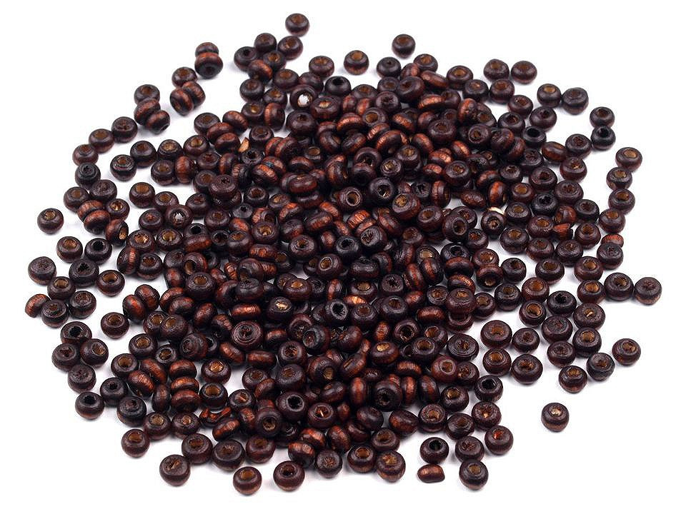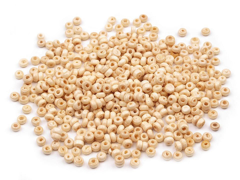 Drobné dřevěné korálky ve tvaru disku. Můžete je použít i tam, kde byste použili rokajl, pokud dáváte přednost přírodním tónům a dřevěnému materiálu.