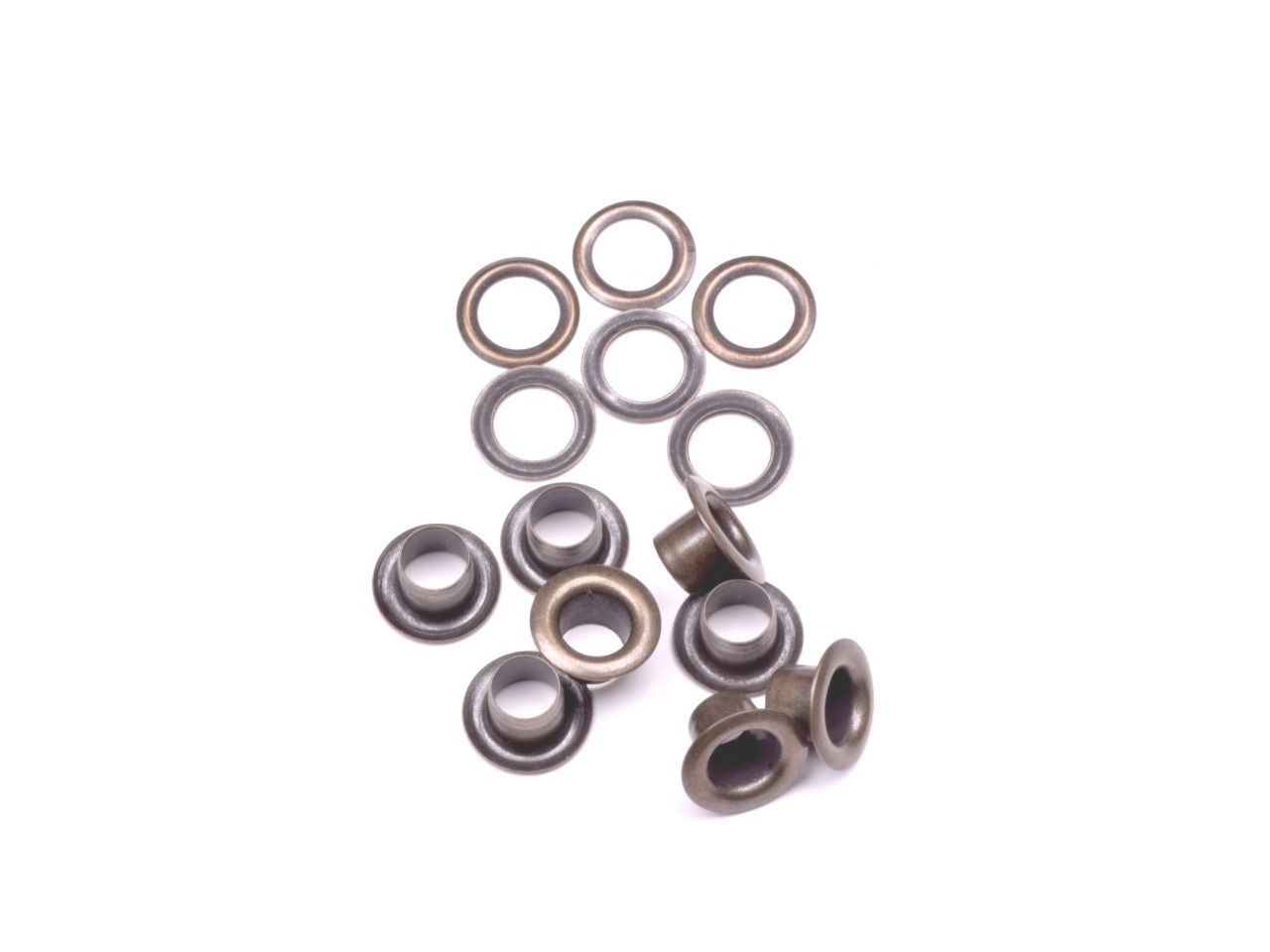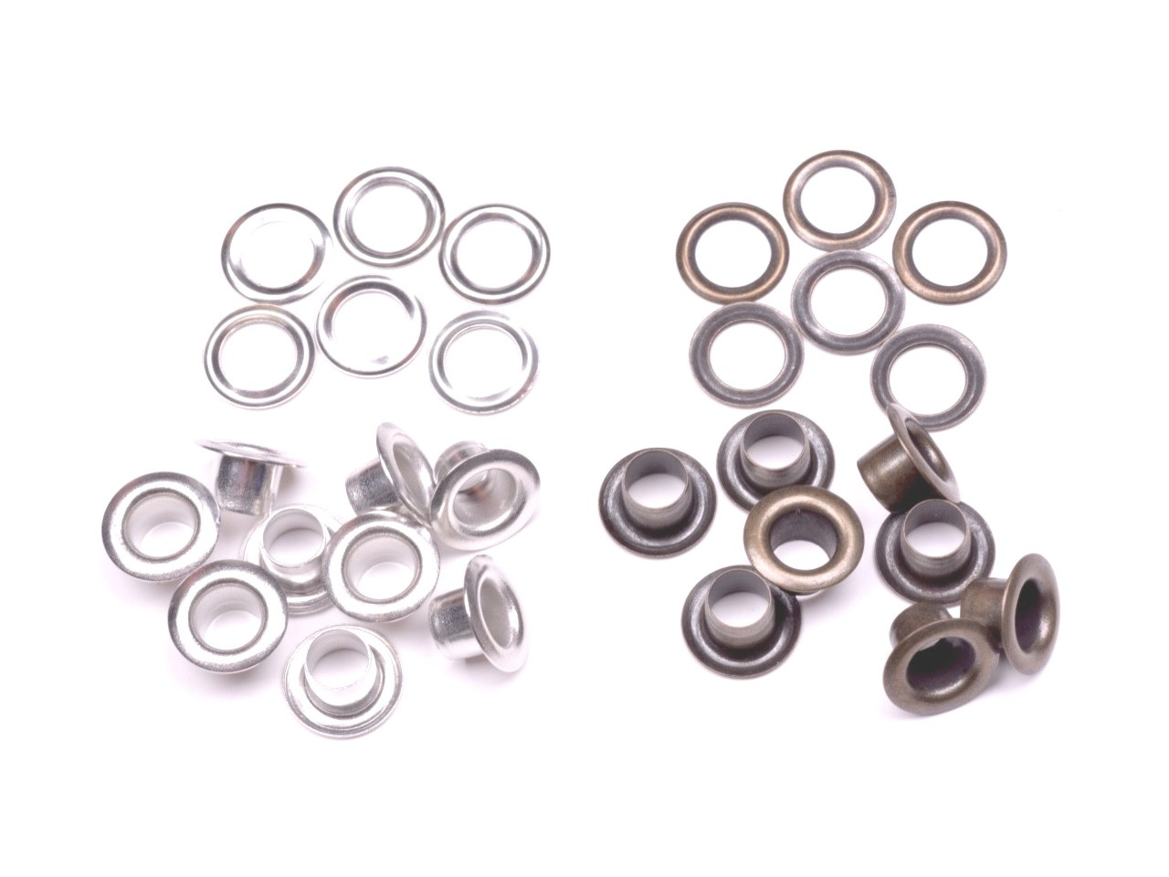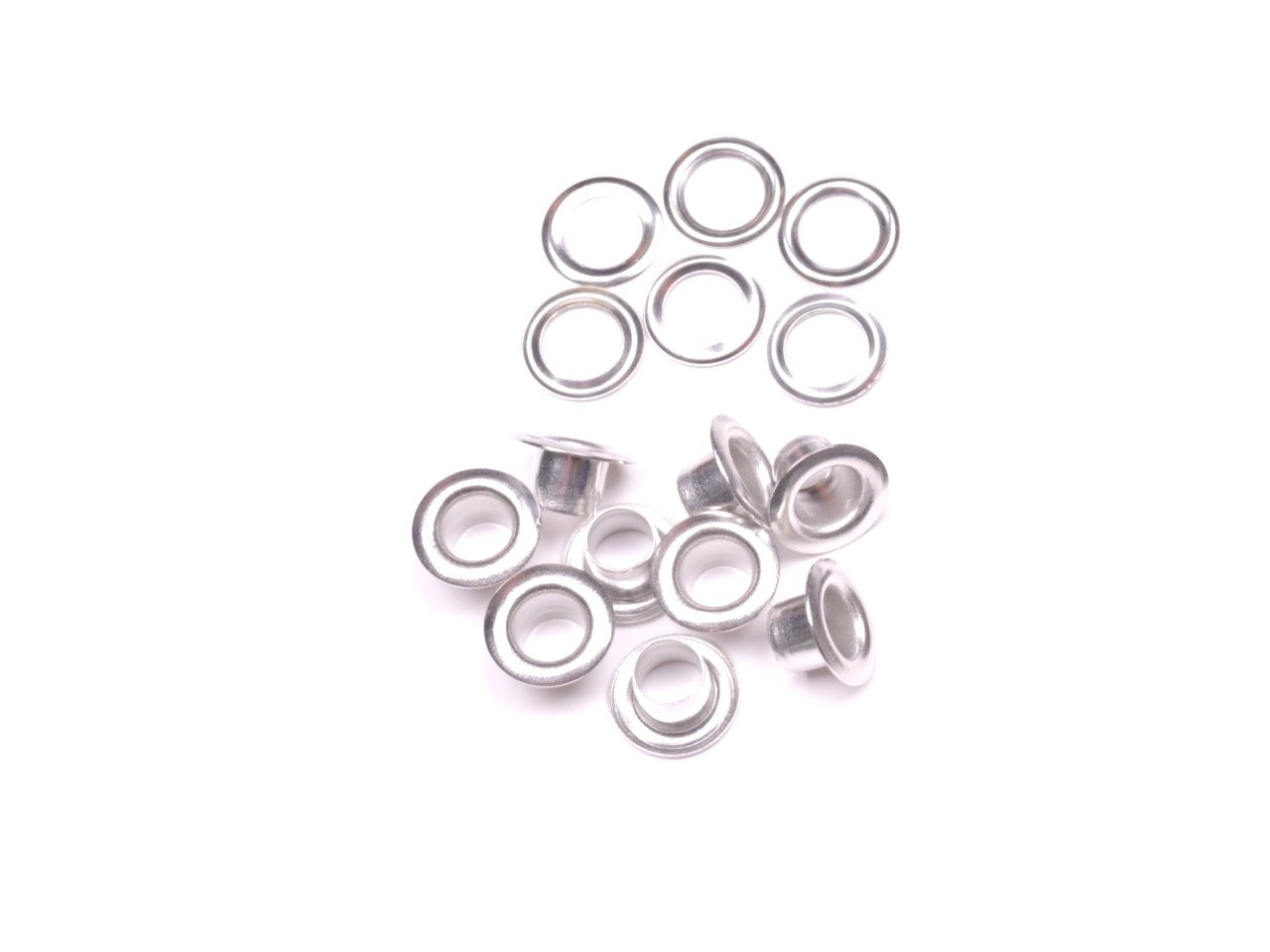 Používá se jako průchodka pro šňůry a gumy. Průměr otvoru průchodky je 5mm. Výška průchodky je 4mm. Nýtování se provádí ručně nebo lisem.