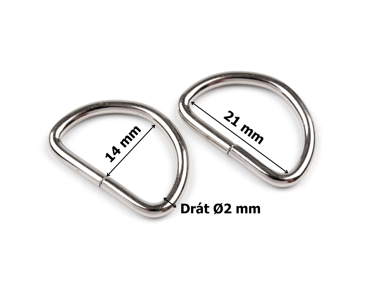 Kovový polokroužek s kulatým profilem o průměru 2 mm slouží především k přichycení ucha ke kabelce, sportovní tašce, aktovce nebo batohu. Můžete s ním uchytit také řemen či popruh. V místě spoje není svařený.