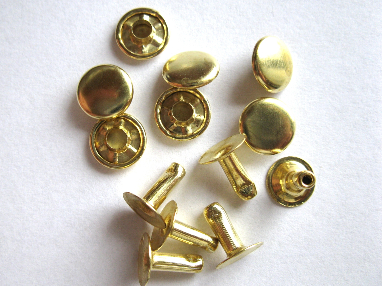 Kovový nýt se skládá ze dvou částí. K jeho aplikaci je potřeba piston, který najdete pod kódem 106467 nebo 113305 a lis . Nýty využijete na ozdobení tašek, kabelek, psaníček nebo ke spojení látek.