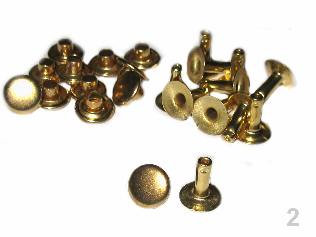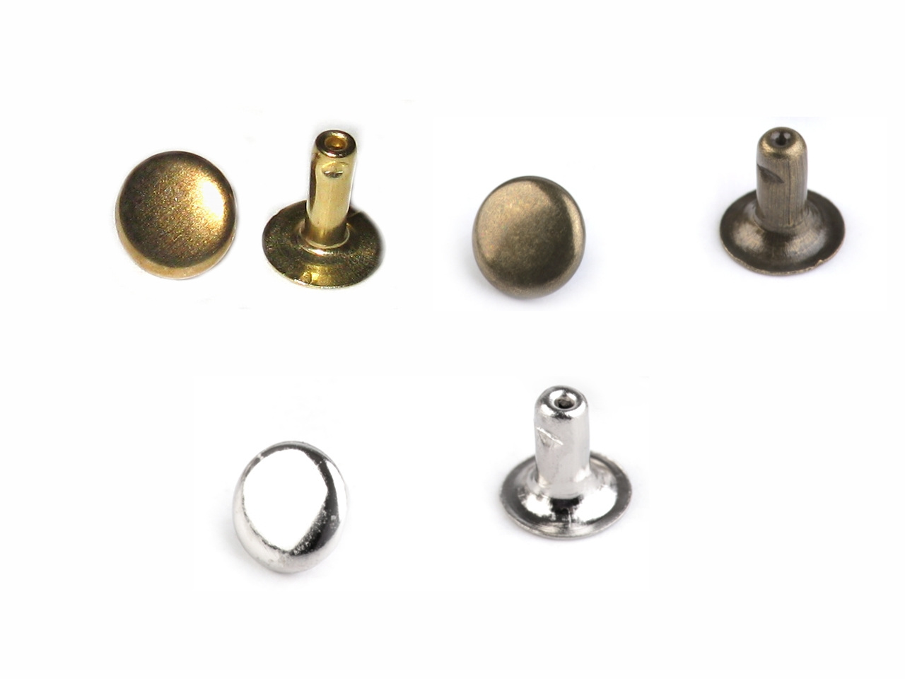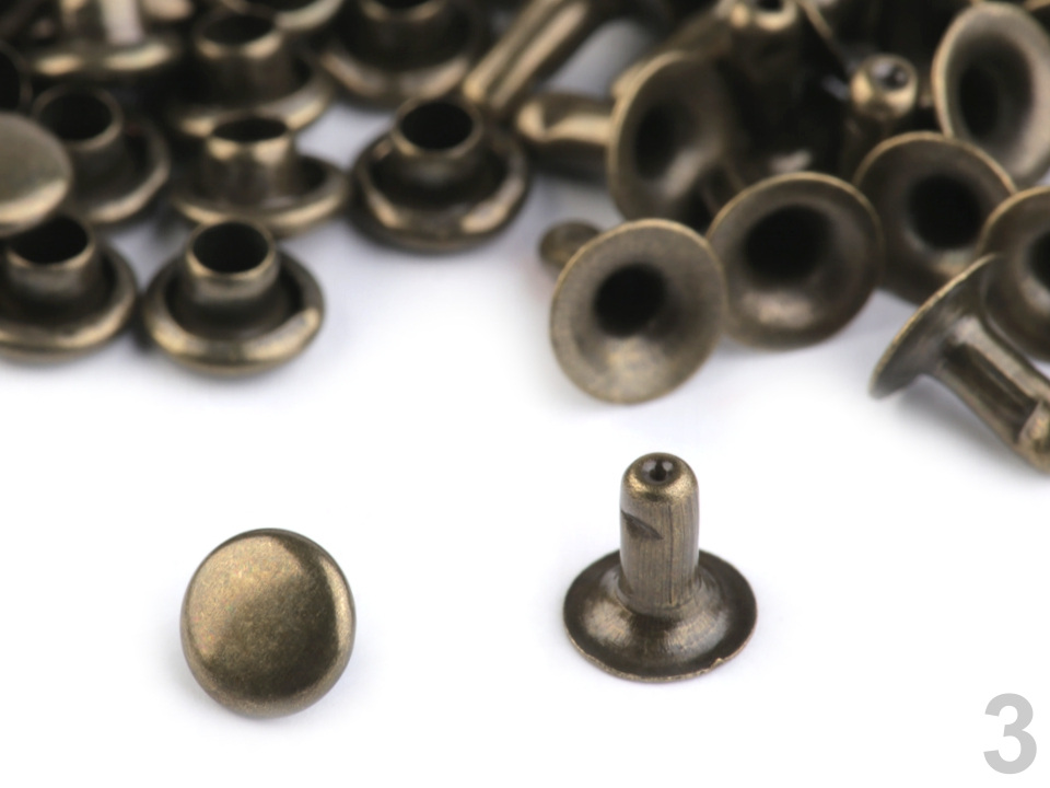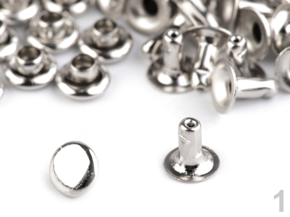 Návod k použití: Jednu část nýtu provlečete materiálem a spojíte druhou částí.