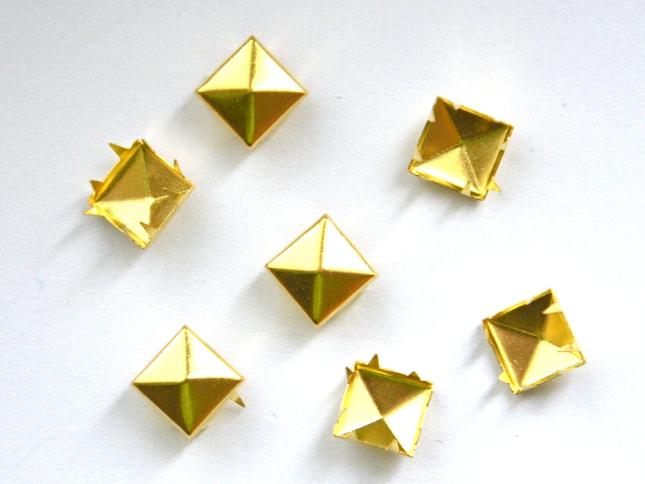 Kovové cvočky ve tvaru pyramidy jsou moderním doplňkem oblečení. Objevují se nejen na rockerském oblečení, ale můžete se s nimi setkat např. na kabelkách, obuvi, šatech, peněženkách, atd. Cvoky jsou opatřeny hroty, kterými se připnou k oděvu. Můžete zakoupit v balení po 50 ks. Rozměry cvočku jsou 10 x 10 mm, výška hrotů 5 mm.