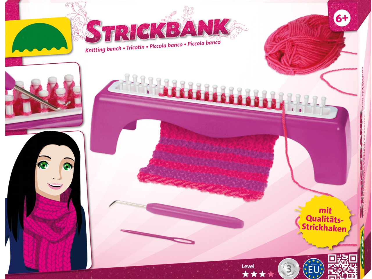 Nauč se plést za pomocí pletacího rámu, háčku, jehly, a bavlnky.