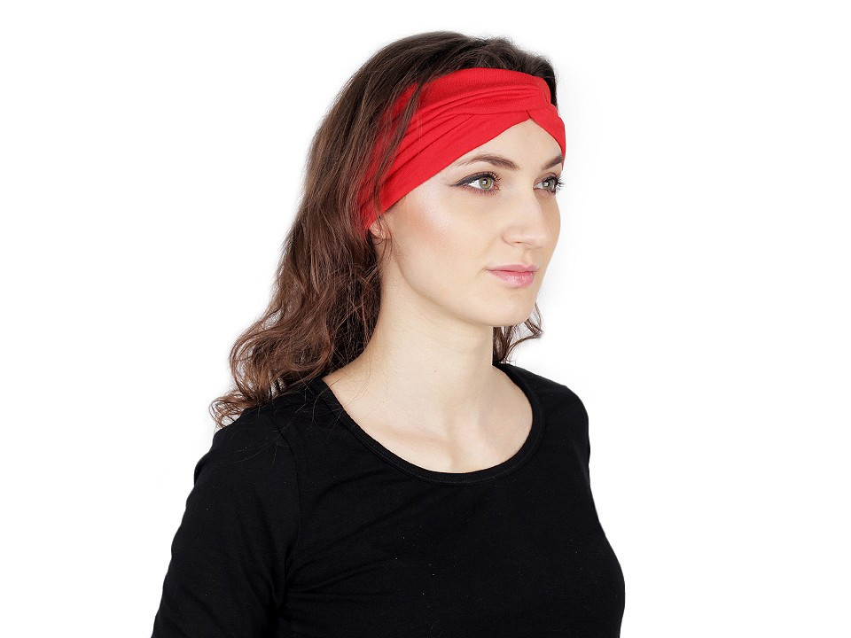 Sportovní látkovou čelenku využijete nejen při sportu, ale i při běžném nošení. Překřížení v přední části je oblíbeným doplňkem ve stylu pin up.