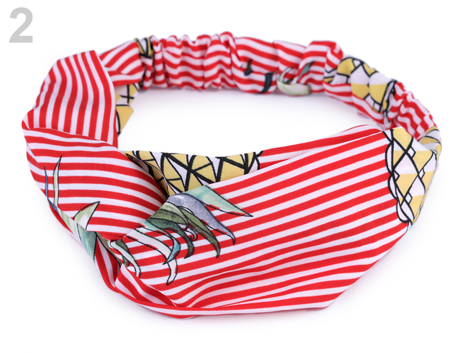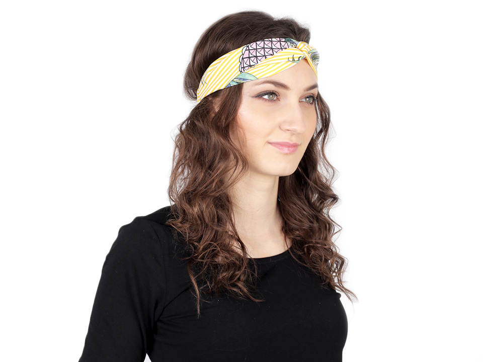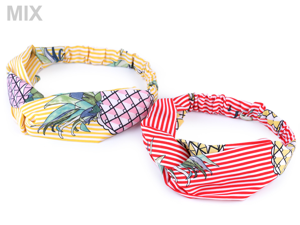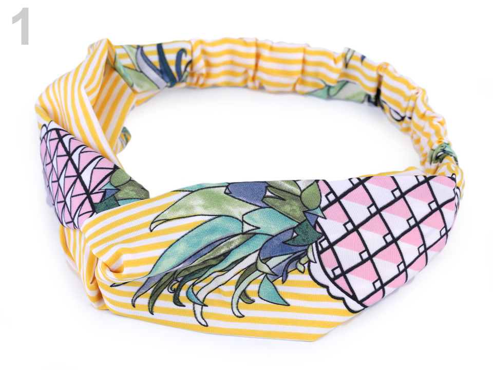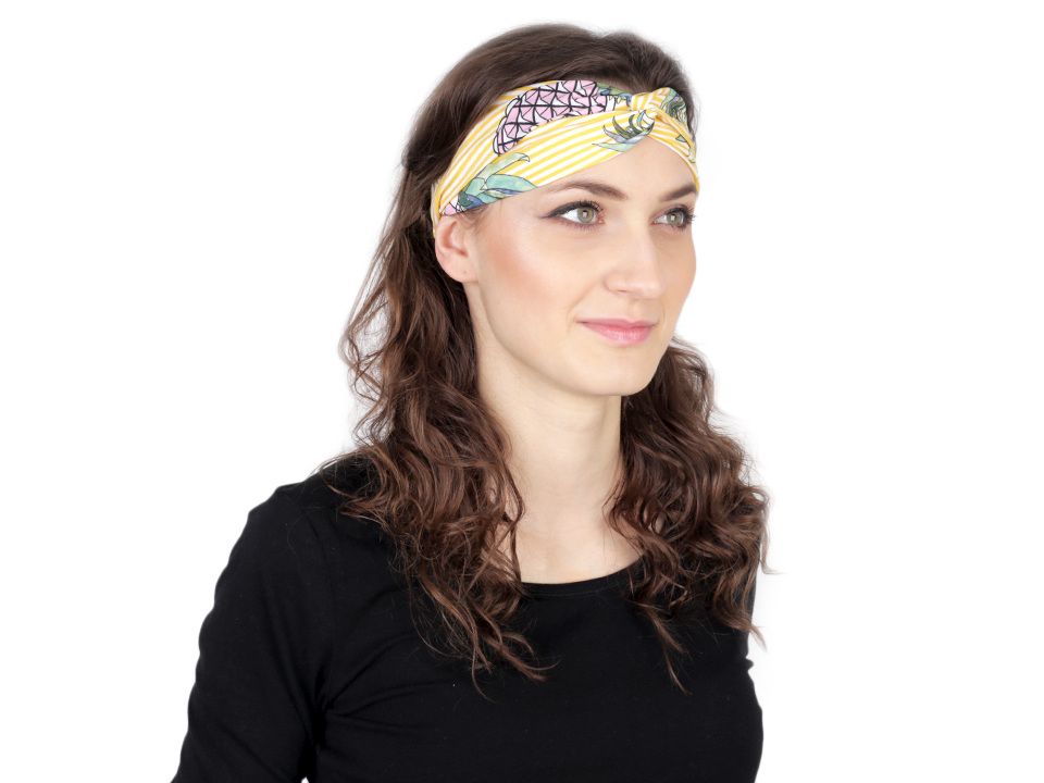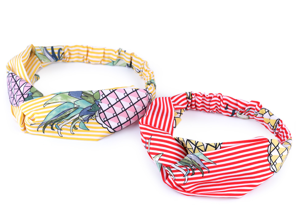 Látková čelenka s motivy ananasu stylově doladí váš letní outfit. Díky propletení v přední části je velice oblíbená, ve vlasech vypadá zajímavě.