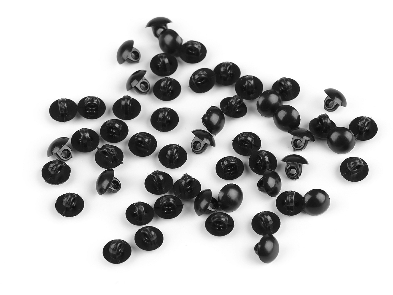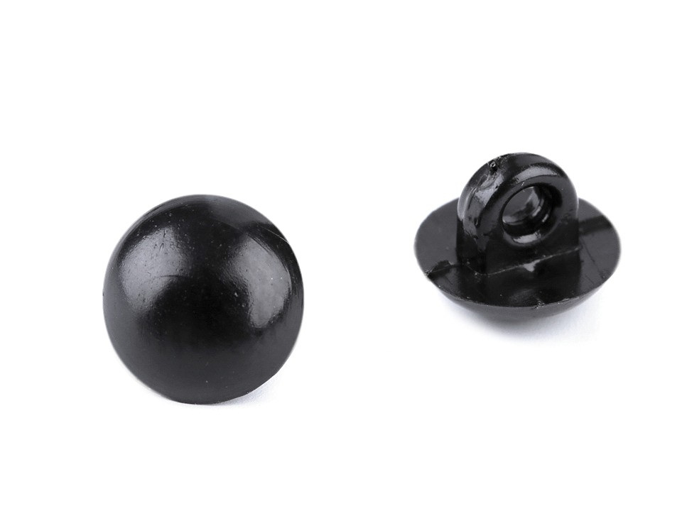 Malé plastové oči mají spodní přišívání. Jejich polokulatá hlavička je hladká a má matný lesk. Můžete je použít na oči loutek a různých dekoračních postaviček. Jsou vhodné také jako knoflíky k halenkám, šatům apod.