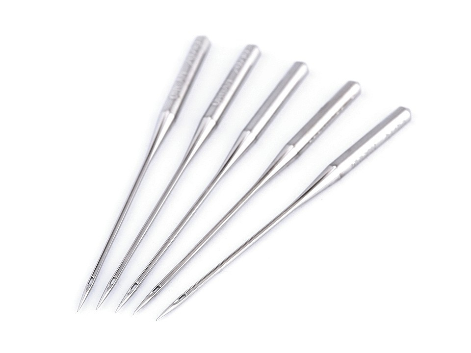 Strojové jehly Universal využijete pro běžné typy látek a materiálů. Jsou ostré a z jedné strany mají plošku.