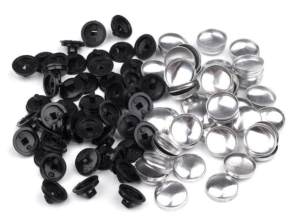 Knoflík na potahování se skládá ze dvou částí - kovové a plastové. K potažení můžete zvolit různé materiály. Potažené knoflíky skvěle ozdobí vaše halenky, šaty, saka apod.