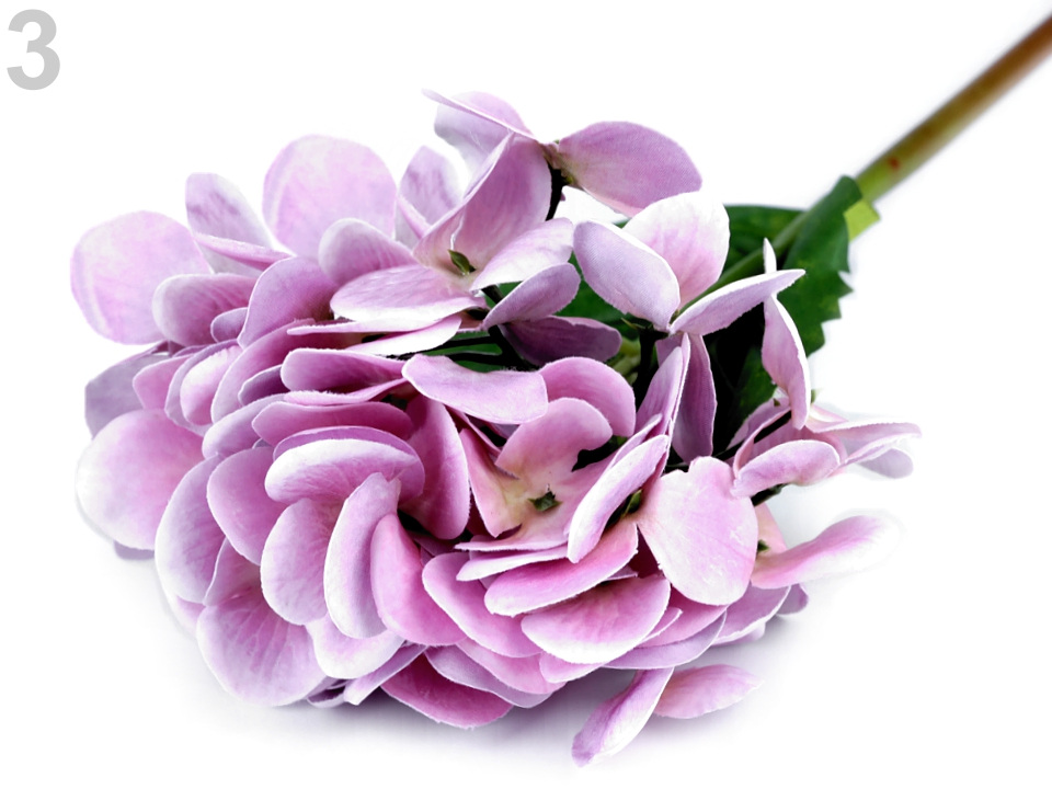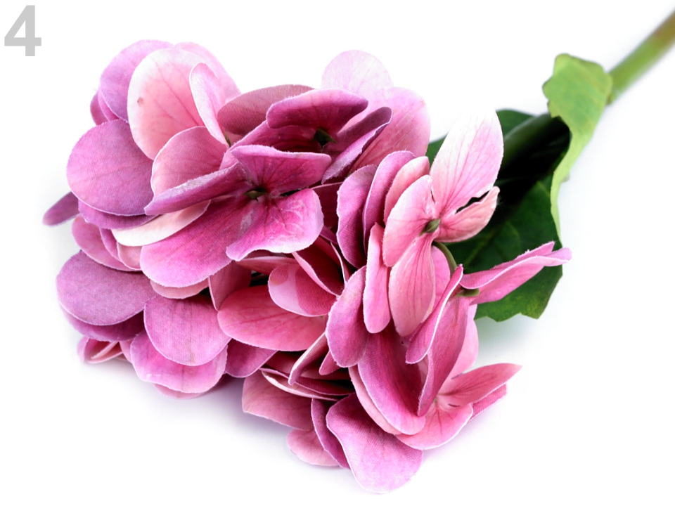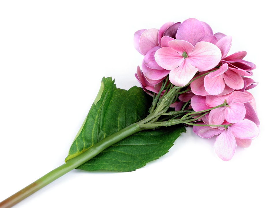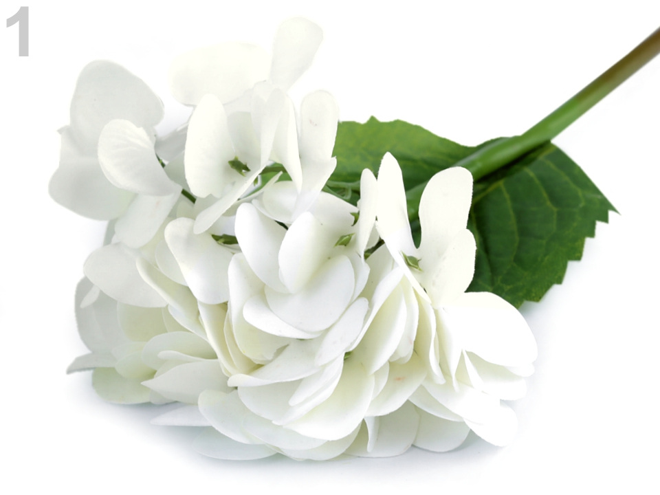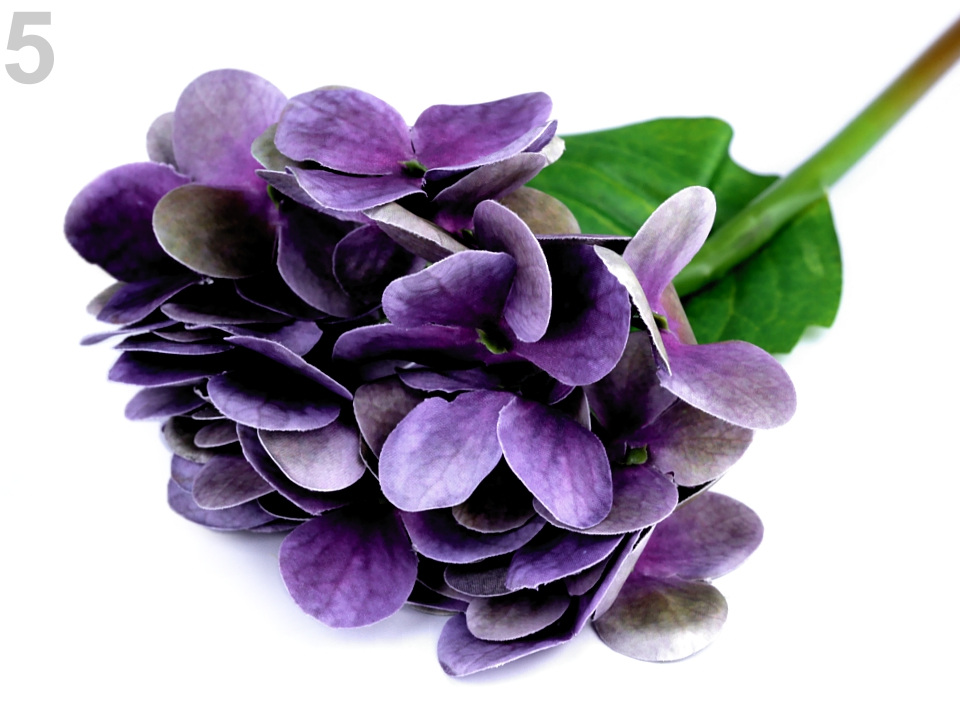 Umělá hortenzie vypadá díky luxusnímu provedení jako její živá předloha. Na květech má jemné žilkování. Stonek můžete tvarovat. Hortenzie vynikne ve váze, v květinových vazbách i na věncích. Jednotlivé trsy květů romanticky dozdobí také květinové čelenky a věnečky do vlasů.