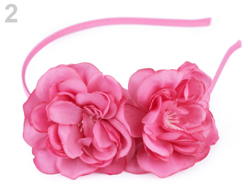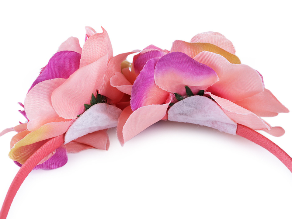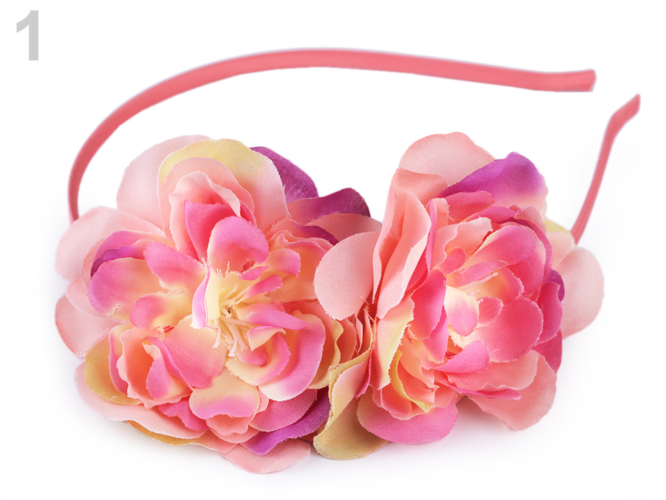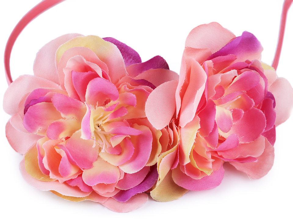 Na kovovém základu, který je potažený saténem, jsou pevně připevněné polyesterové květy s ombré efektem.