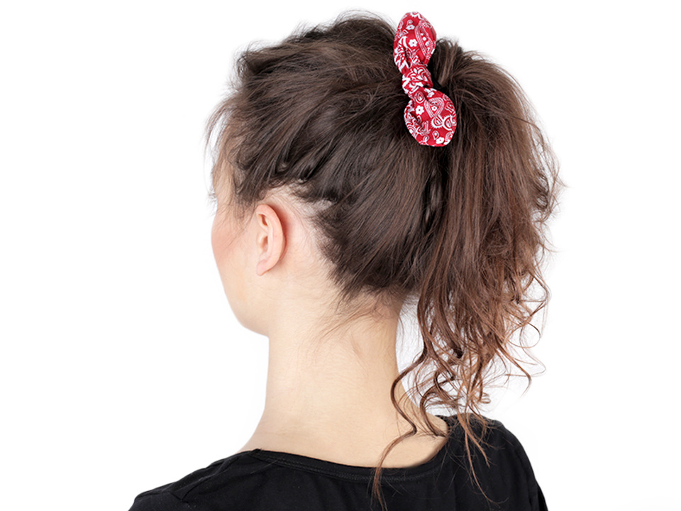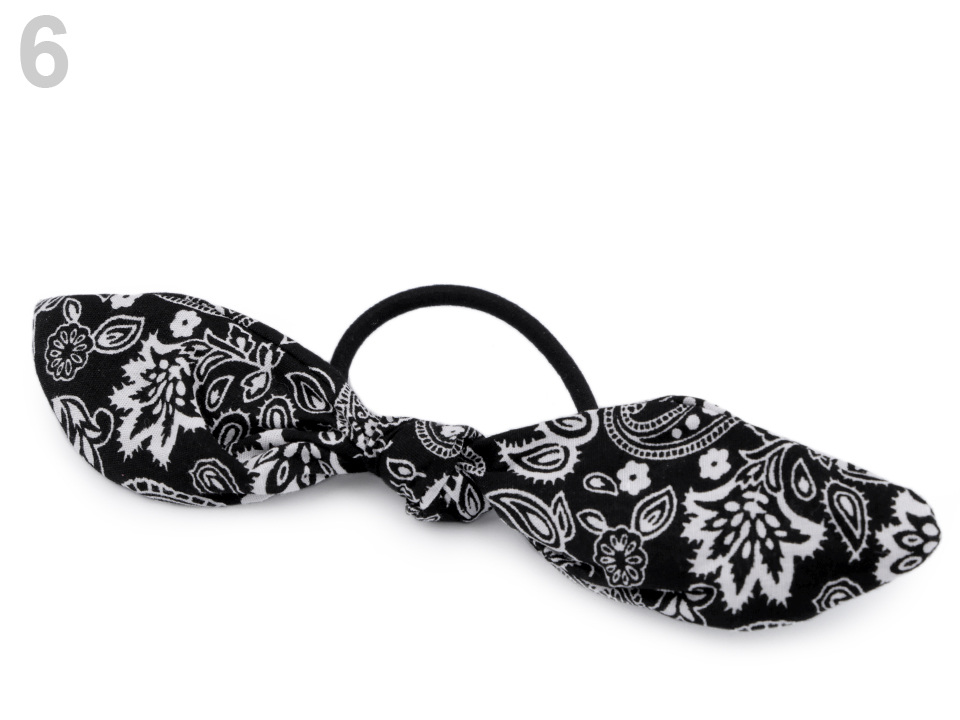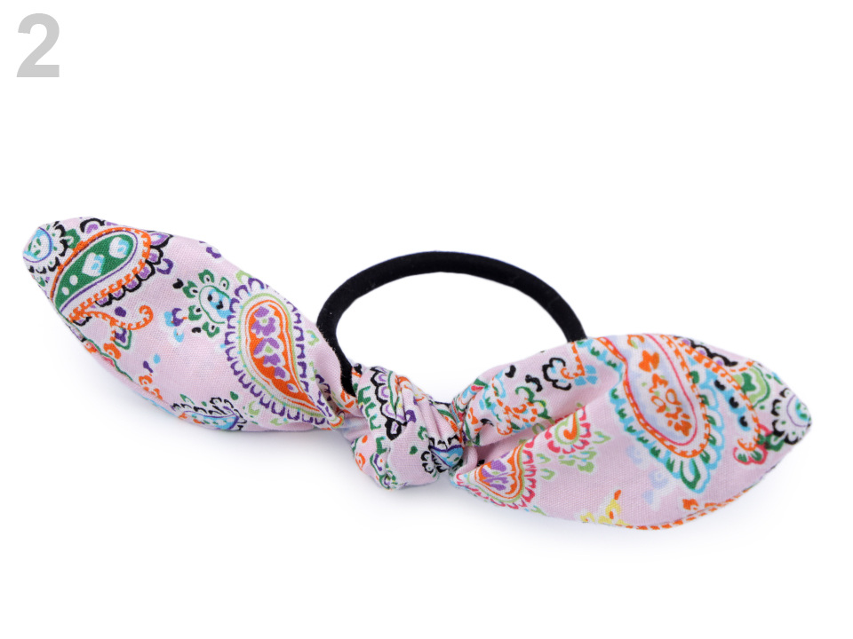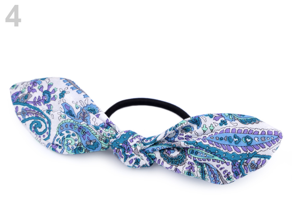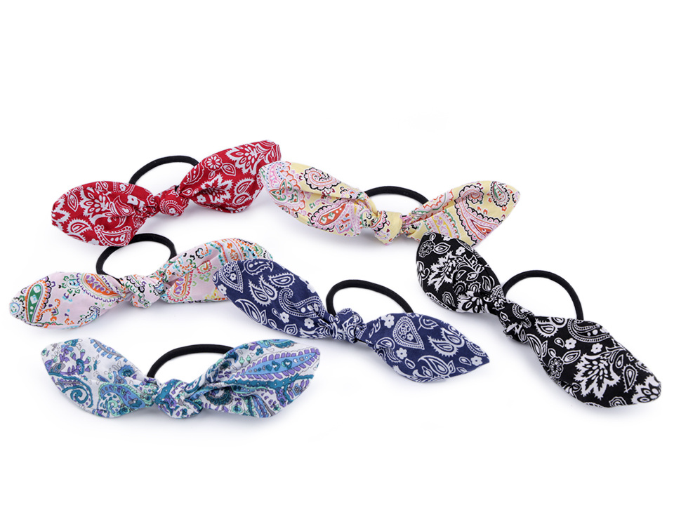 Látkové gumičky s mašlí působí vesele a hravě. V účesu vypadají zajímavě, pohodlně se nosí. Jsou šetrné k vlasům. Mašle má potisk s paisley vzorem, je vyztužená drátkem, pěkně drží tvar, můžete si ji tvarovat podle potřeb.