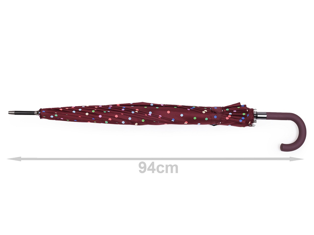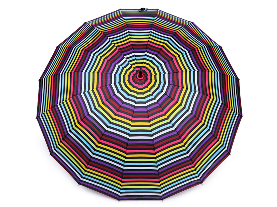 Duhový vystřelovací deštník vás spolehlivě ochrání před nepřízní počasí. Skládá se z šestnácti polí. Díky jeho velkému průměru 113 cm je vhodný jako deštník pro dva (rodinný deštník).