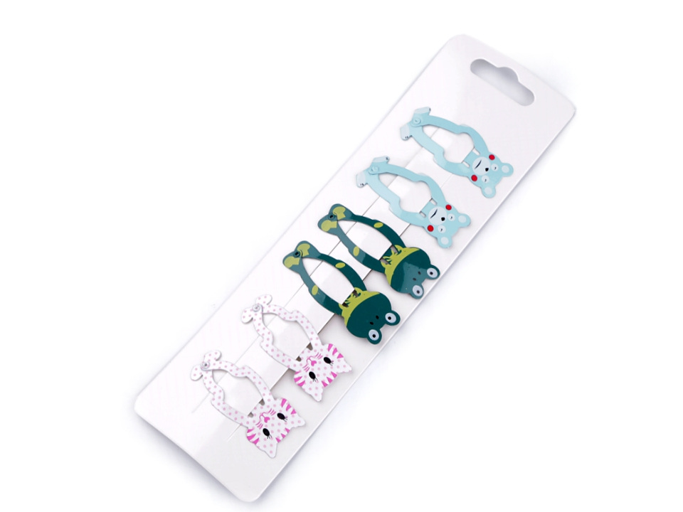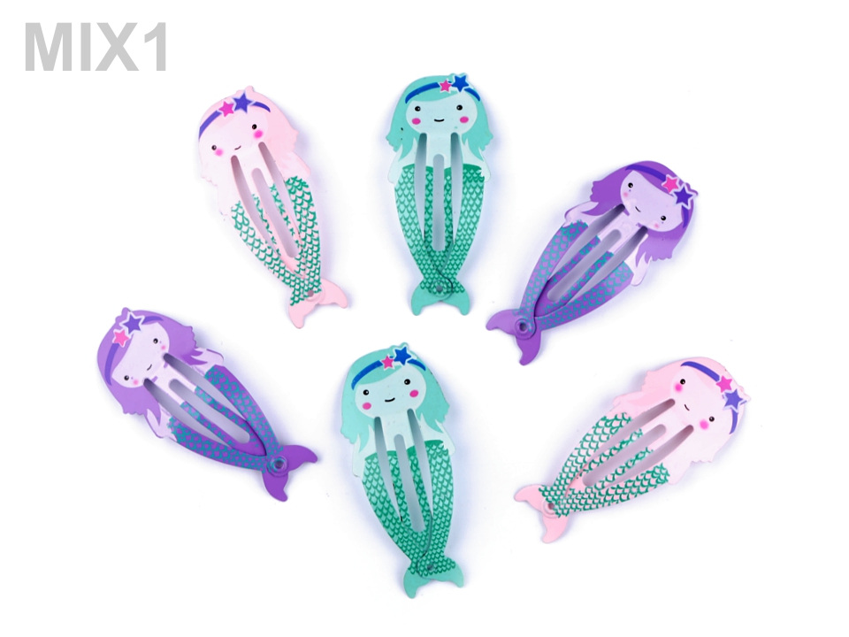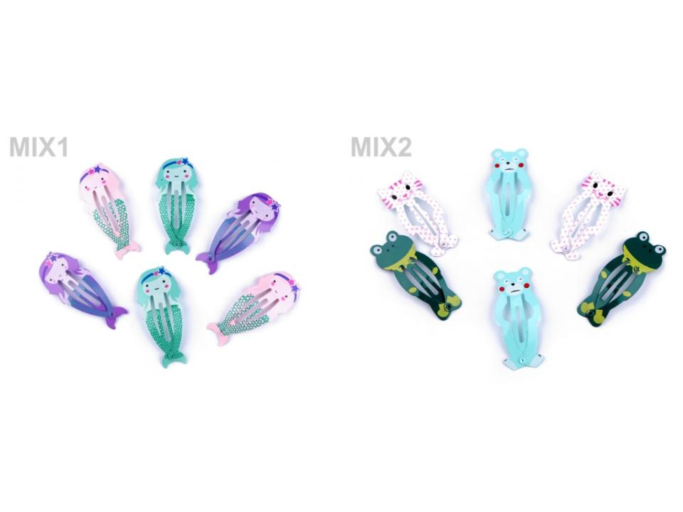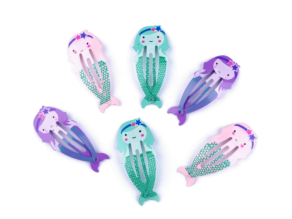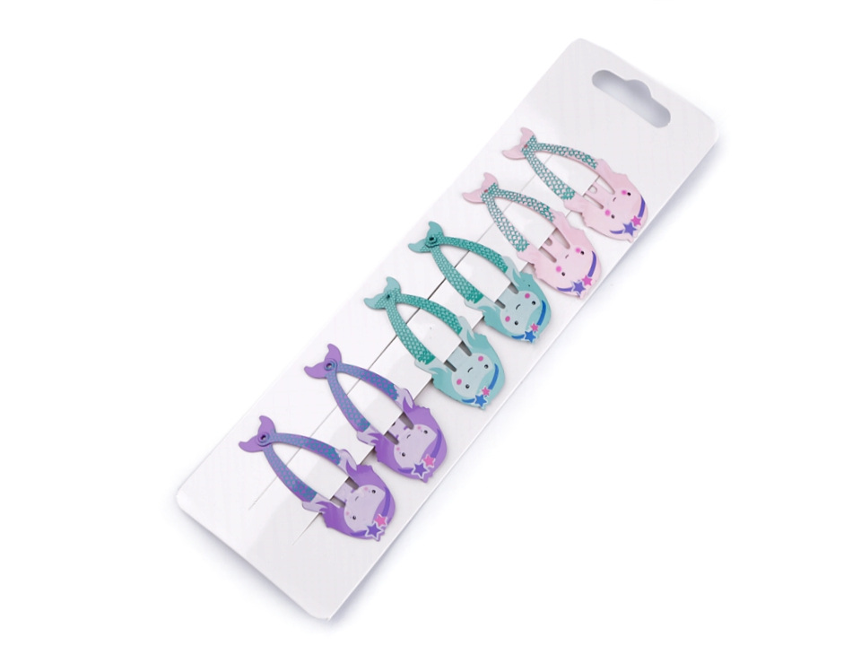 Na papírové kartě je 6 ks sponek po 3 párech vytvarovaných do podoby mořské panny nebo zvířátek. Sponky jsou vyrobené z kvalitního materiálu, který dlouho drží svůj tvar, funkčnost i barvy. Karta je opatřená výsekem pro zavěšení a vystavení na prodejní stojan.