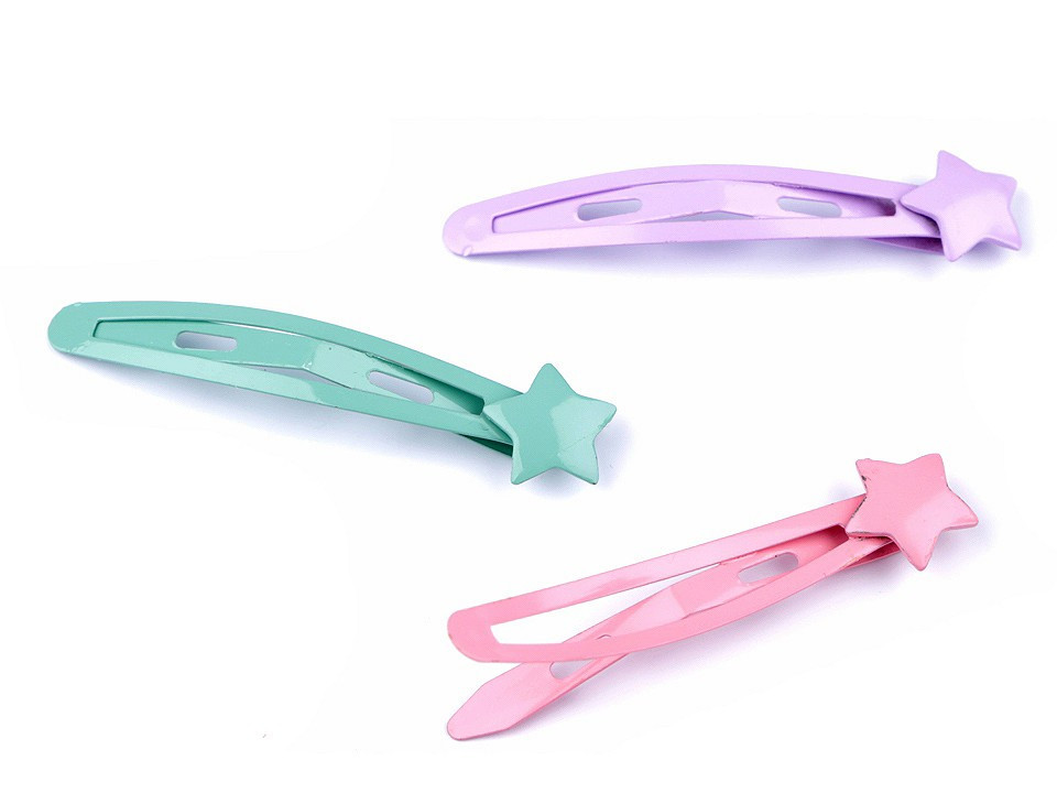Dlouhé jednobarevné sponky s ozdobou potěší malé i větší slečny. Jsou vyrobené z kvalitního materiálu, který dlouho drží svůj tvar, funkčnost i barvy. Ve vlasech dobře drží a netlačí.