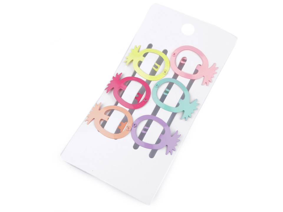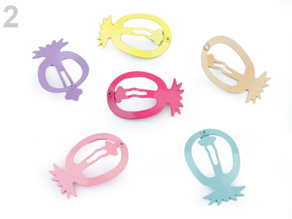 Sponky pukačky ve tvaru srdce nebo ananasu skvěle oživí účes. Hodí se i do jemných dětských vlásků, udrží i jemný pramínek vlasů. Jsou vyrobené z kvalitního materiálu, který dlouho drží svůj tvar, funkčnost i barvy.
