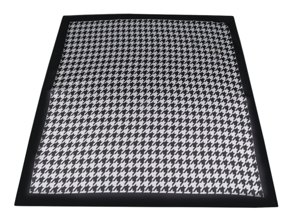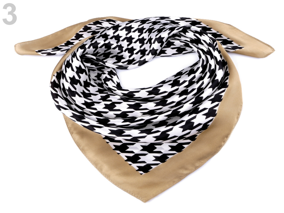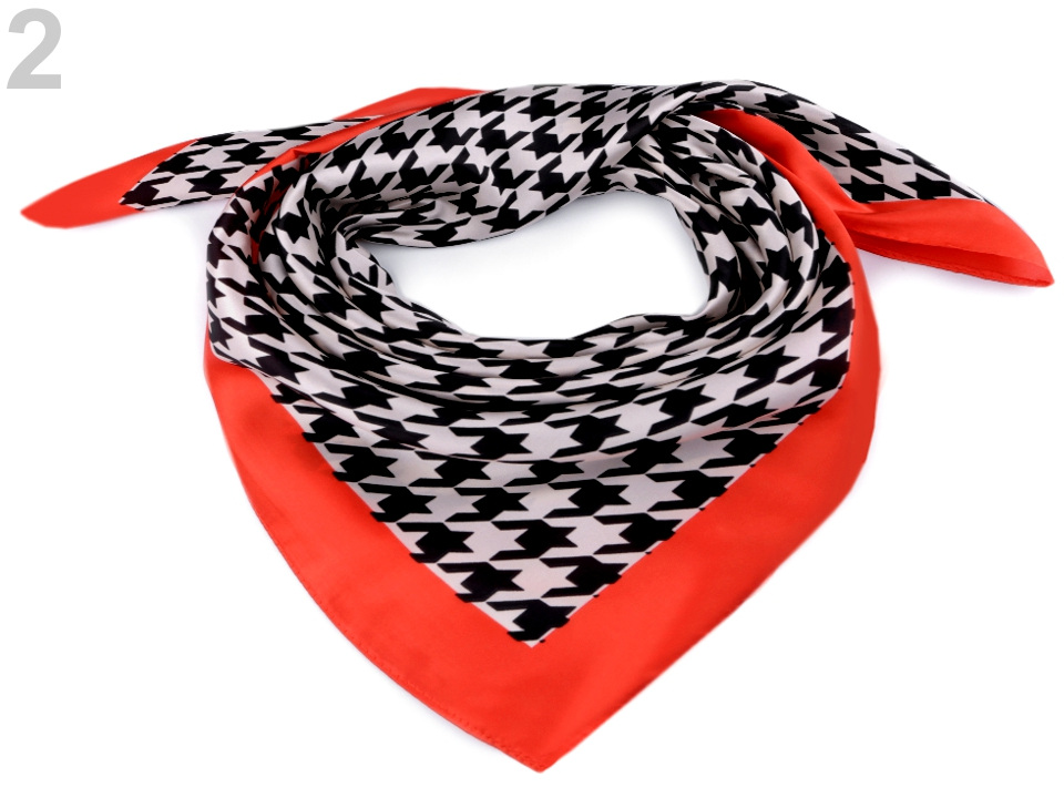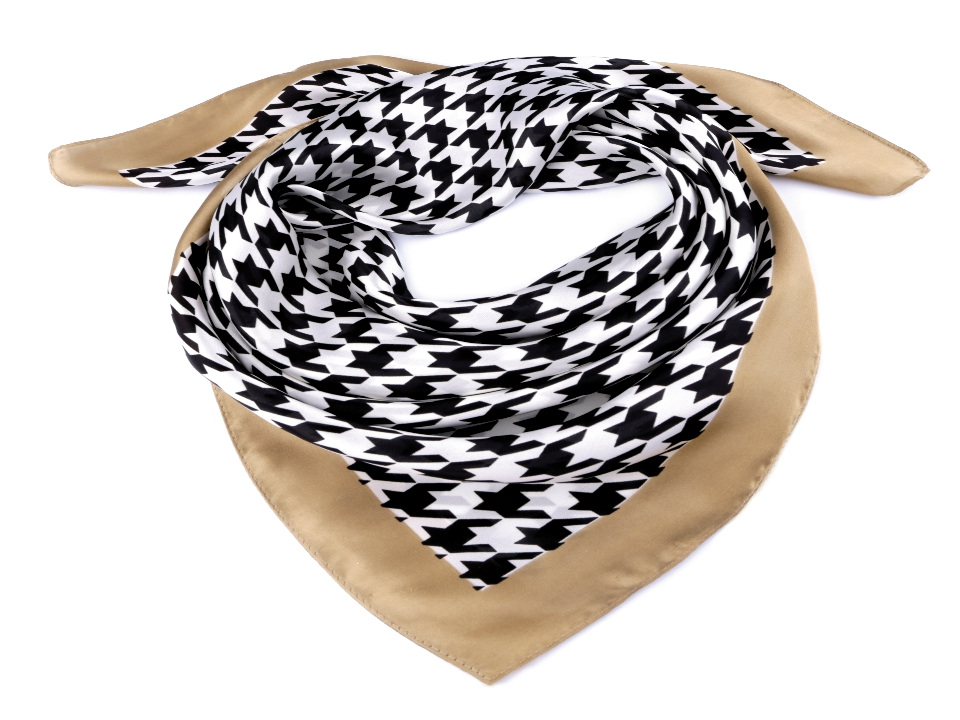 Saténový šátek s potiskem kohoutí stopy využijete k jakémukoliv oblečení. Je vhodný ke každodennímu nošení. Jeho příjemný materiál vás bude doslova hýčkat, připomíná hedvábí. Můžete ho uvázat do slušivého uzlu, který podtrhne dokonalost vašeho oděvu. Oživíte s ním sáčko, halenku i tričko.