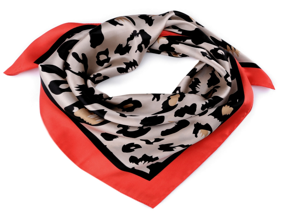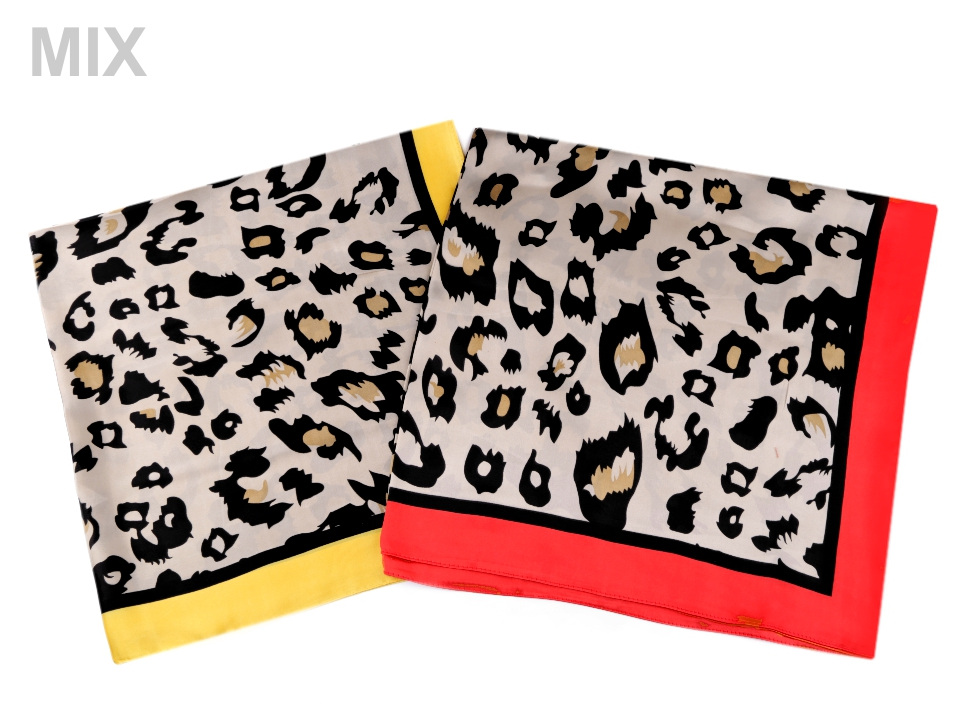 Saténový šátek s elegantním leopardím vzorem je výrazným módním doplňkem. Oživíte s ním jednobarevné sáčko, halenku, šaty i tričko. Příjemný materiál s jemným leskem vás bude doslova hýčkat. Čtvercový tvar, můžete variabilně upravit kolem krku.