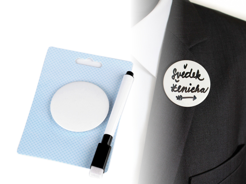 Placku oceníte na párty, oslavě, rozlučce se svobodou nebo soutěžích. Přiloženým fixem na ni můžete napsat cokoli budete chtít. Nápis pak smažete houbičkou, která je na fixu. Pokud fix nepůjde dokonale smazat, můžete placku očistit hadříkem a odlakovačem. Na zadní straně má špendlík, takže na oděvech dobře drží.