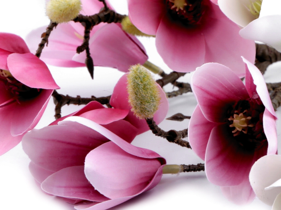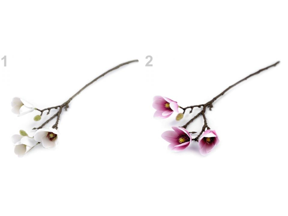 Umělá větvička magnolie působí jako živá. Má kvalitně vypracované detaily. Její jemný romantický vzhled vynikne v jednoduché váze.