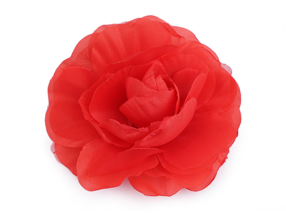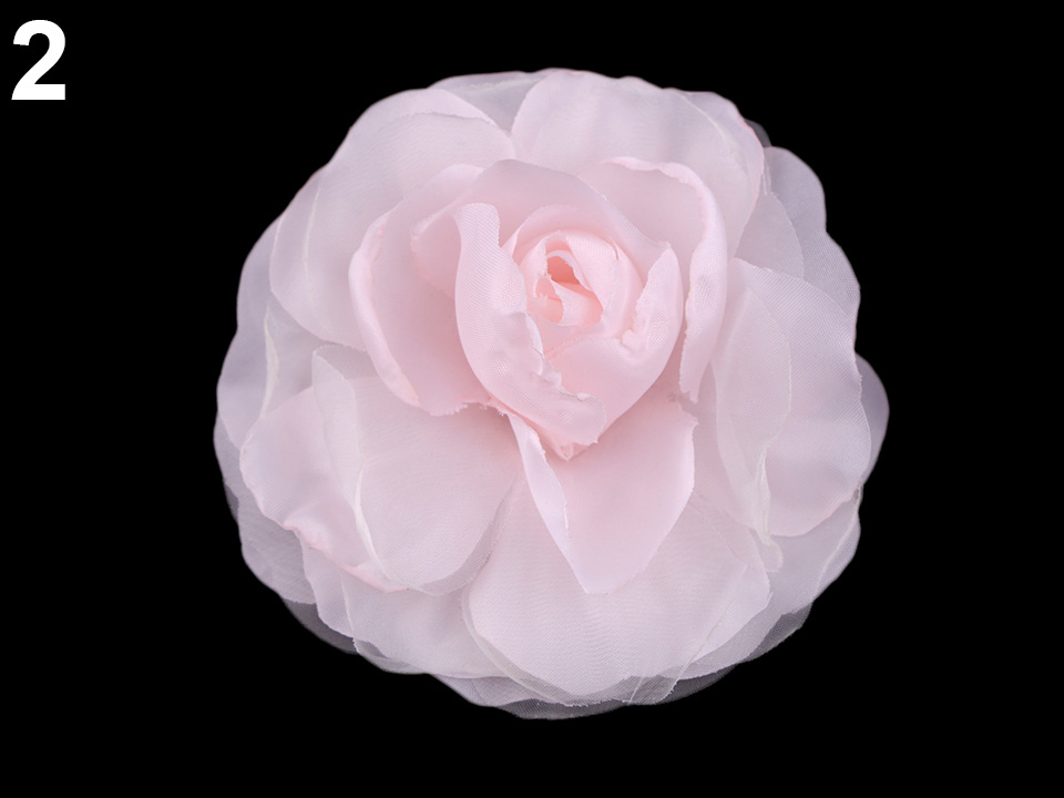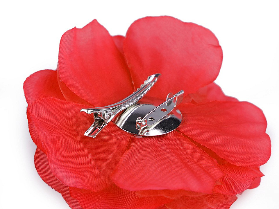 Brož ve tvaru růže je jemně nadýchaná, má krásný 3D tvar. Ve spodní části má spínací špendlík a klips, takže ji můžete připevnit jak na oděv, tak do vlasů. Brož využijete jako ozdobu na šaty, halenku, sako nebo kabelku. Ve vlasech bude působit romanicky.