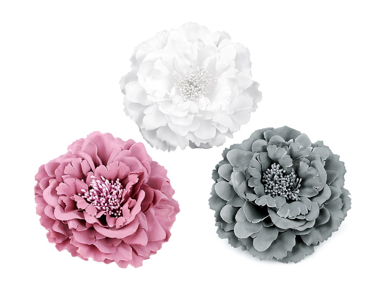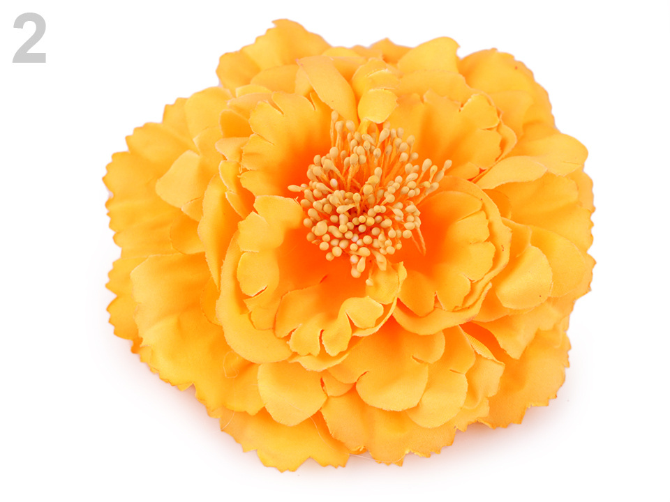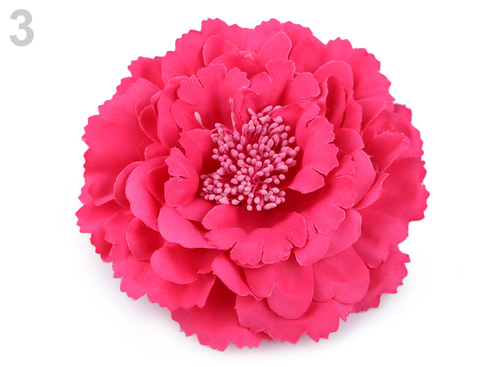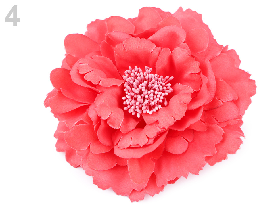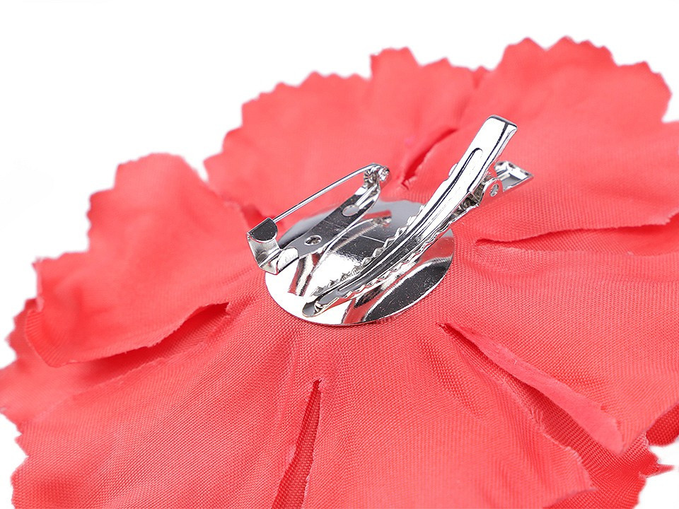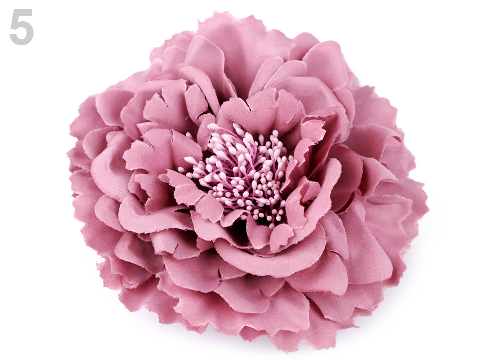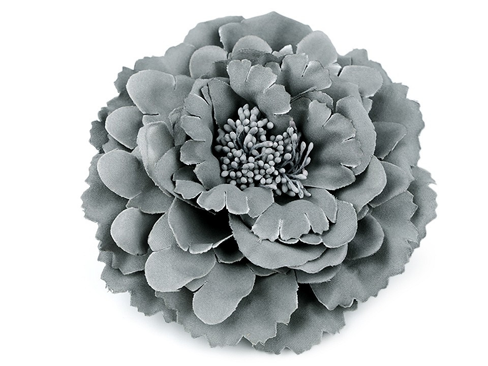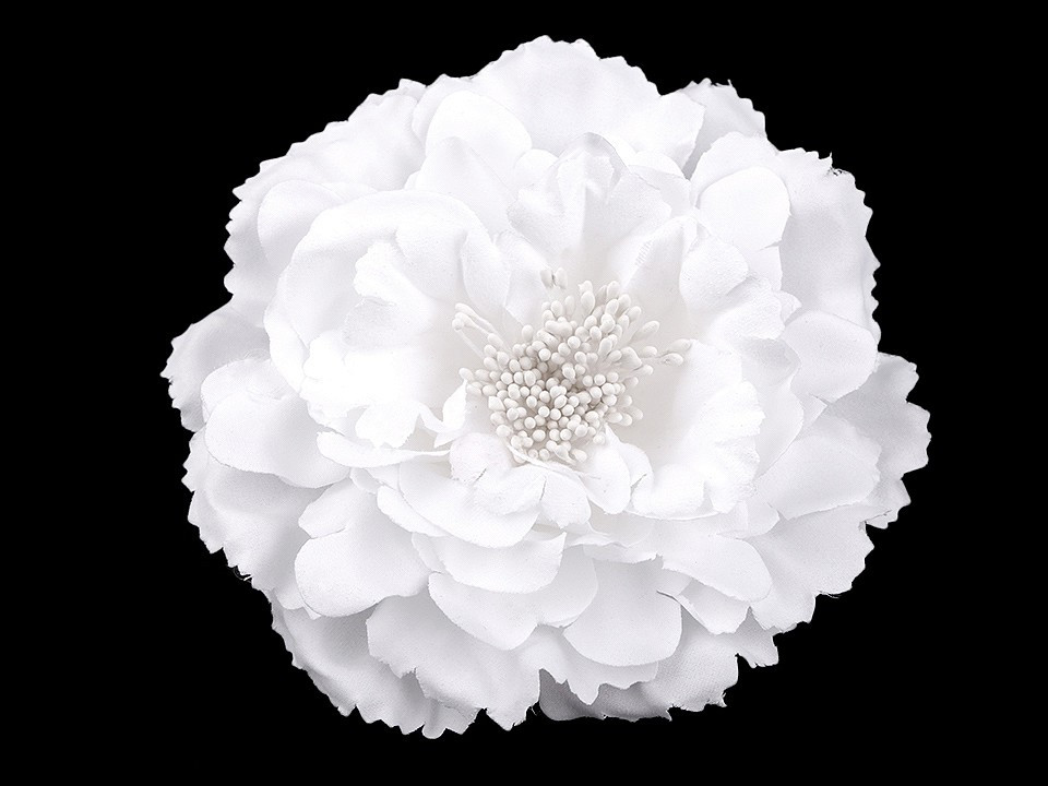 Velký elegantní květ potěší všechny romanticky založené ženy a dívky. Díky bohatým okvětním plátkům působí nadýchaným dojmem. Jeho střed zdobí malé pestíky. Ve spodní části má spínací špendlík a klips, takže jej můžete připevnit jak na oděv, tak do vlasů. Květ využijete jako ozdobu na šaty, halenku, sako nebo kabelku.