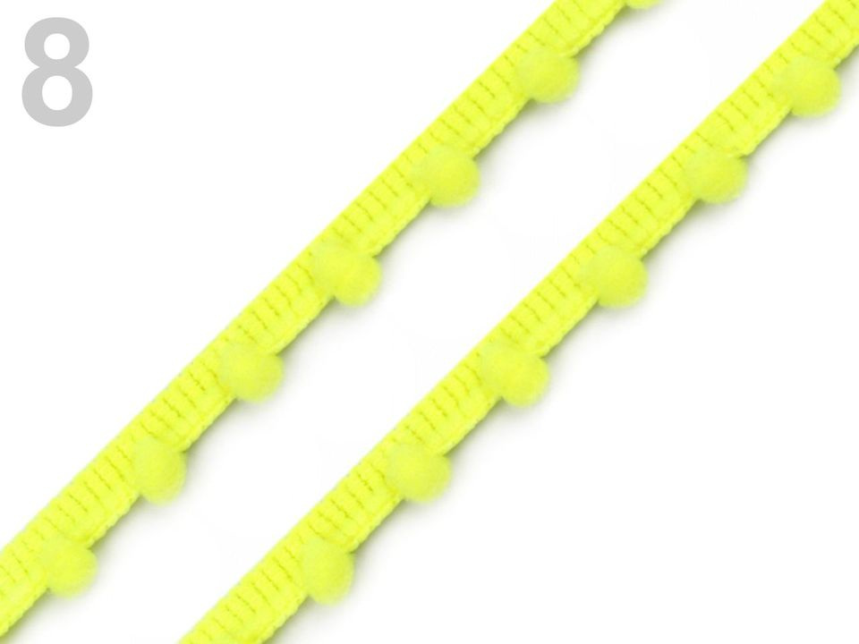 Prýmek šíře 7 mm s bambulkami Ø7 mm - 8 Limelight