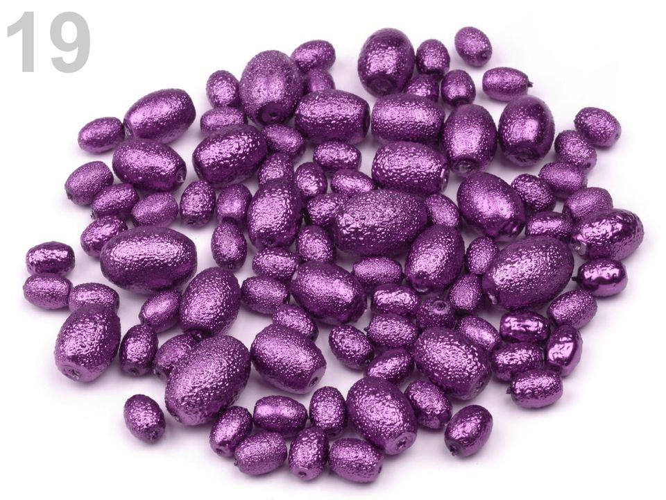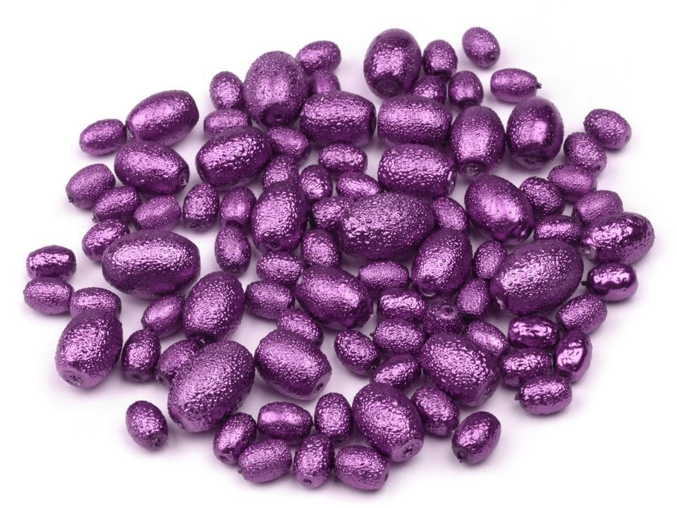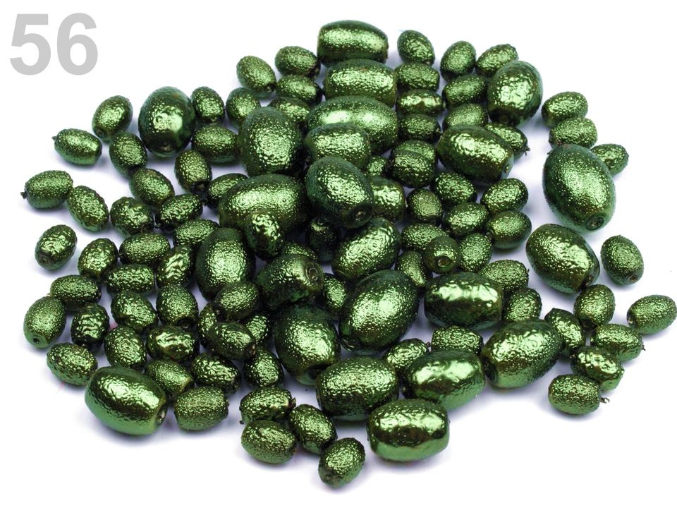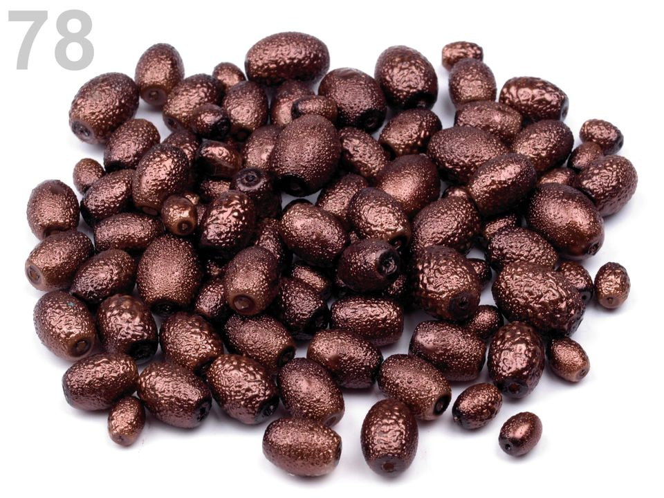 Voskované perly jsou jednou ze stálic našeho sortimentu. Tyto jsou ve tvaru oliv s velmi oblíbeným vroubkovaným povrchem. Korálky jsou baleny v mixu velikostí.Složení: sklo