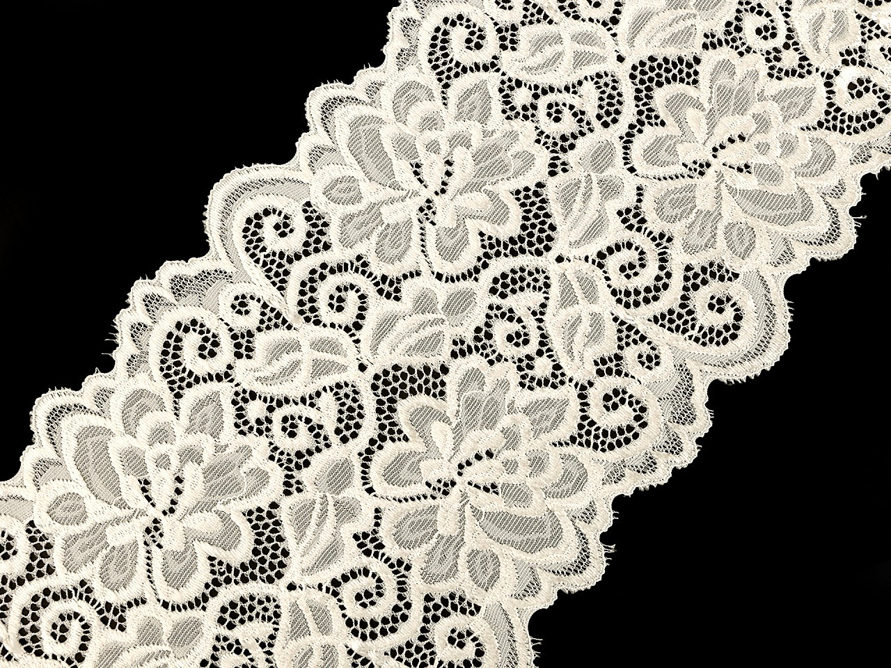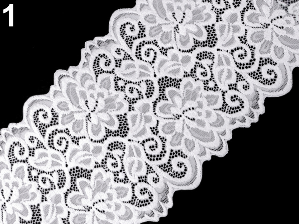 Široká krajka je pružná a zdobí ji motiv květů.