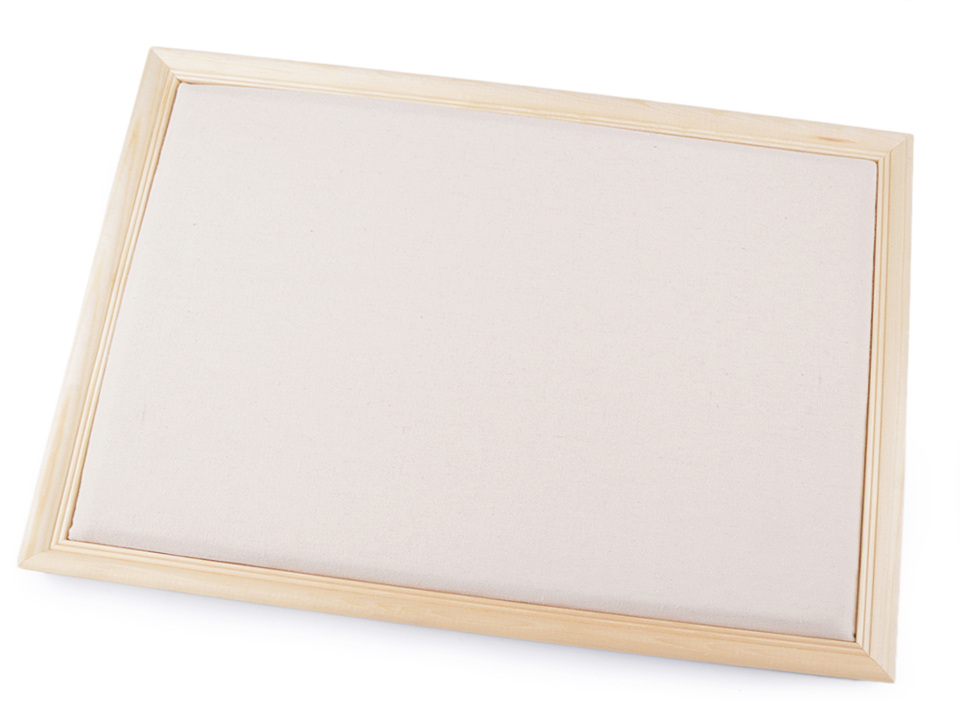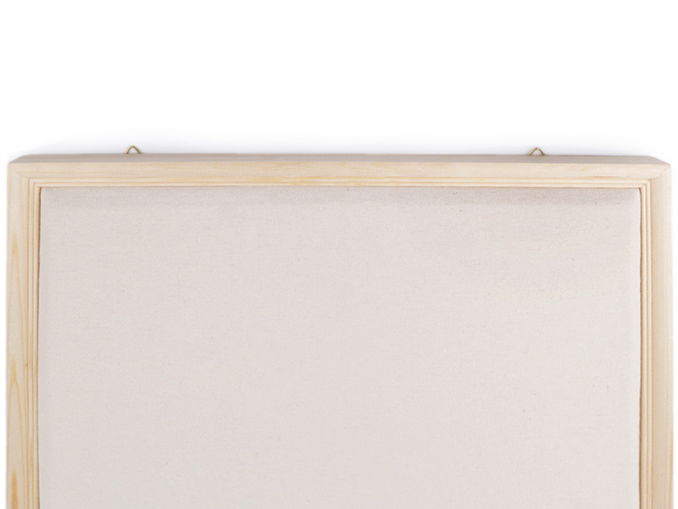 Rám s molitanem potažený lněným plátnem můžete kreativně dozdobit. Do molitanu můžete postupně připichovat ozdoby - kousky textilních materiálů, knoflíky, motýlky a další aplikace a vrstvit je na sebe. Vzniknou tak např. obrazy krajin, postav, zvířat a dalších.