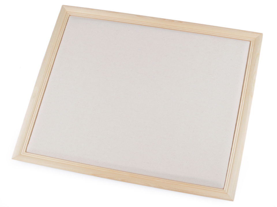 Rám s molitanem potažený lněným plátnem můžete kreativně dozdobit. Do molitanu můžete postupně připichovat ozdoby - kousky textilních materiálů, knoflíky, motýlky a další aplikace a vrstvit je na sebe. Vzniknou tak např. obrazy krajin, postav, zvířat a dalších.