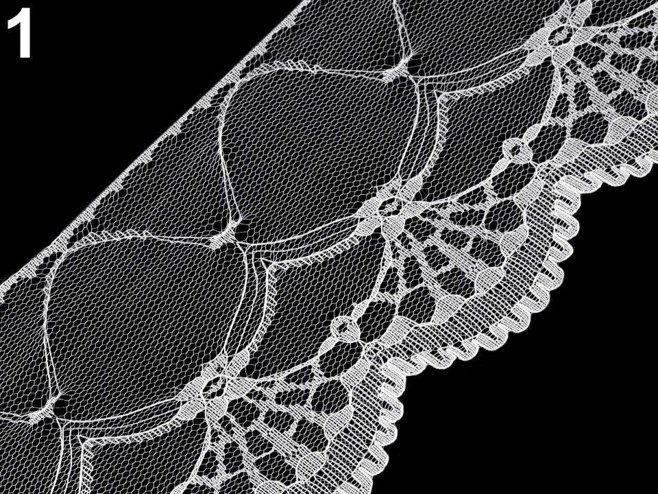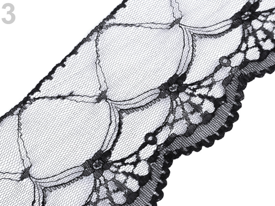 Široká syntetická krajka je na spodní straně zakončená většími obloučky.