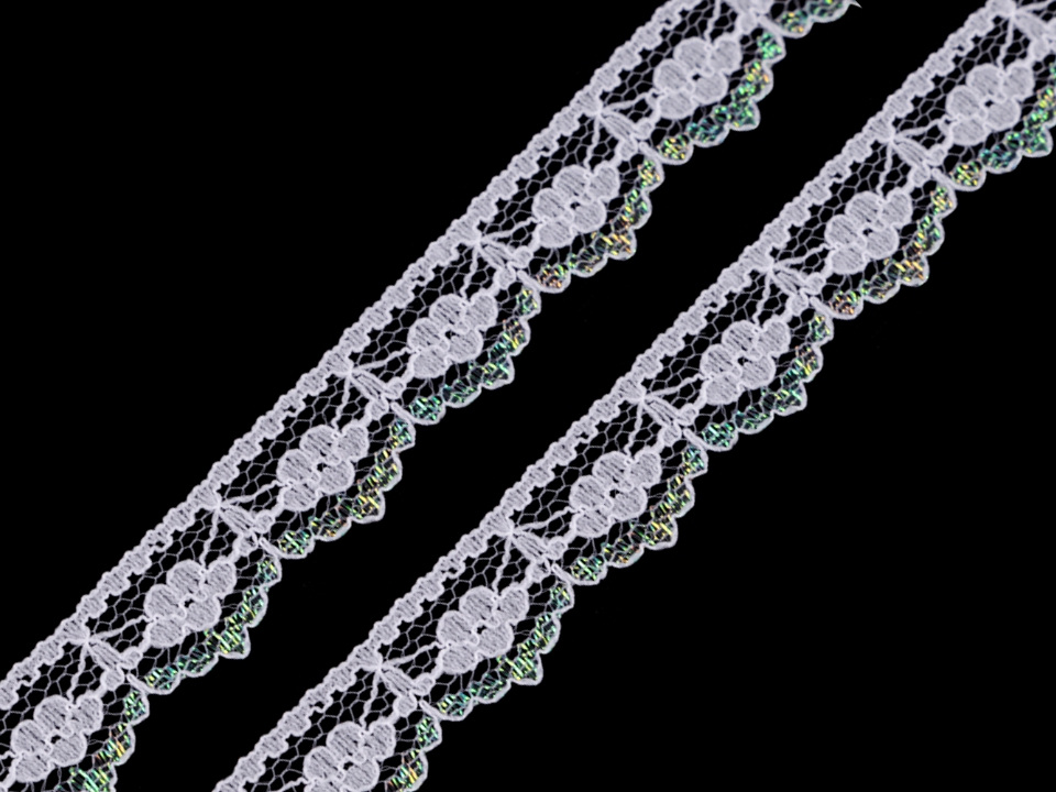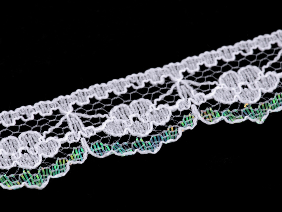 Syntetická krajka je doplněná lurexem s AB efektem.
