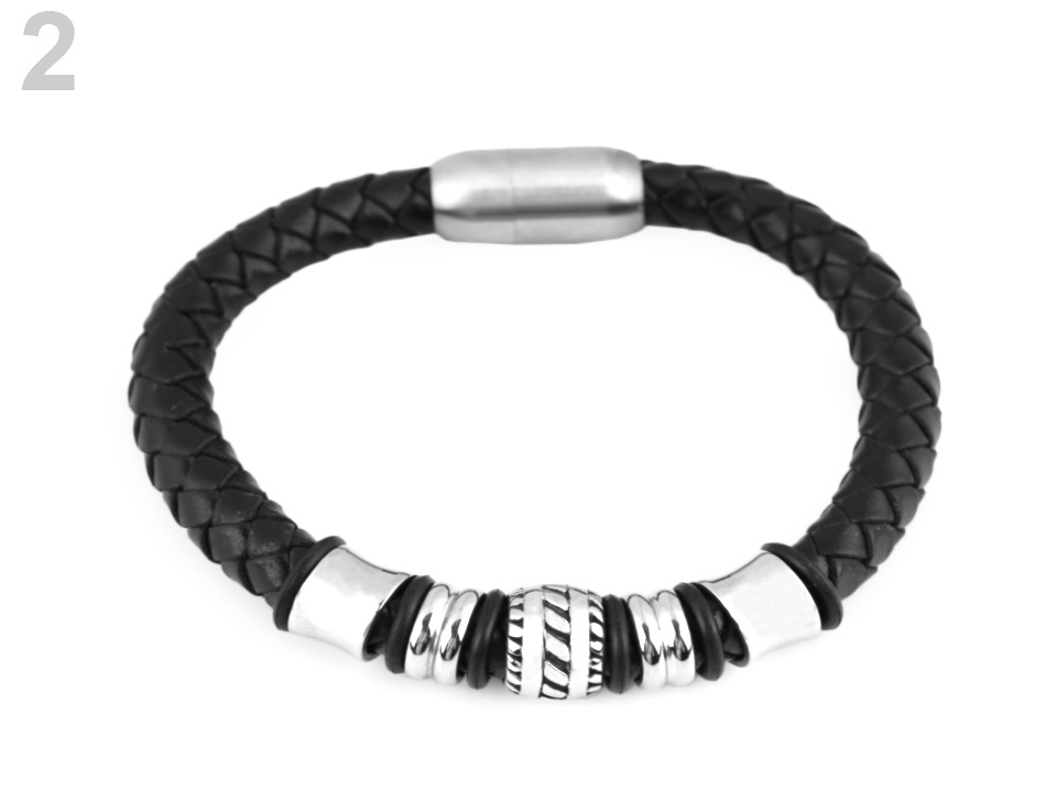 Kožený náramek s ozdobami z nerezové oceli má zajímavý design. Využijete ho k džínám a ležérnímu stylu oblékání.