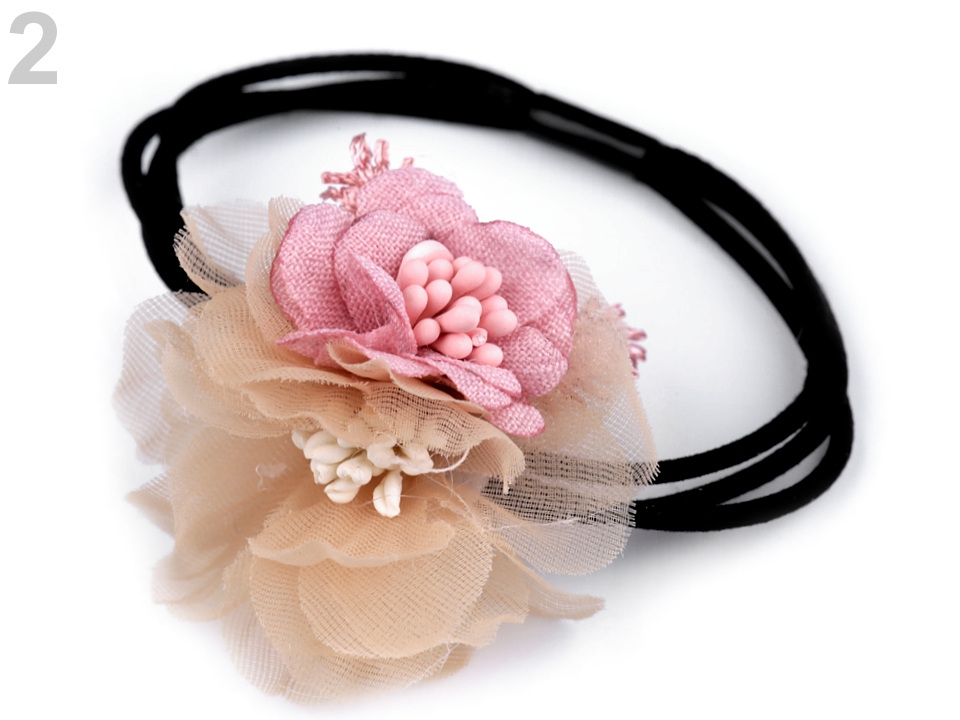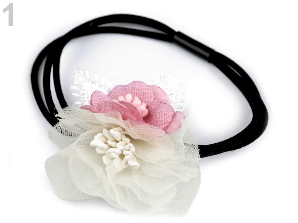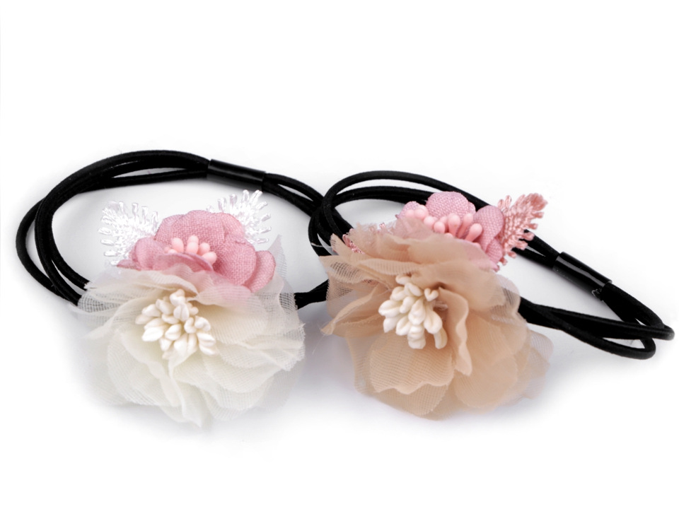 Zajímavá gumička do vlasů s květy s pestíkovými středy potěší dívky i ženy jakéhokoliv věku. Květy jsou výrazné, ale přitom decentní. Má bohaté okvětní plátky, efektně účes ozdobí. Jedna gumička je složená ze 3 tenkých, 2 mm gumiček. Jsou pevně spojené plastovou spojkou. Využijete ji na silné i tenké copy.