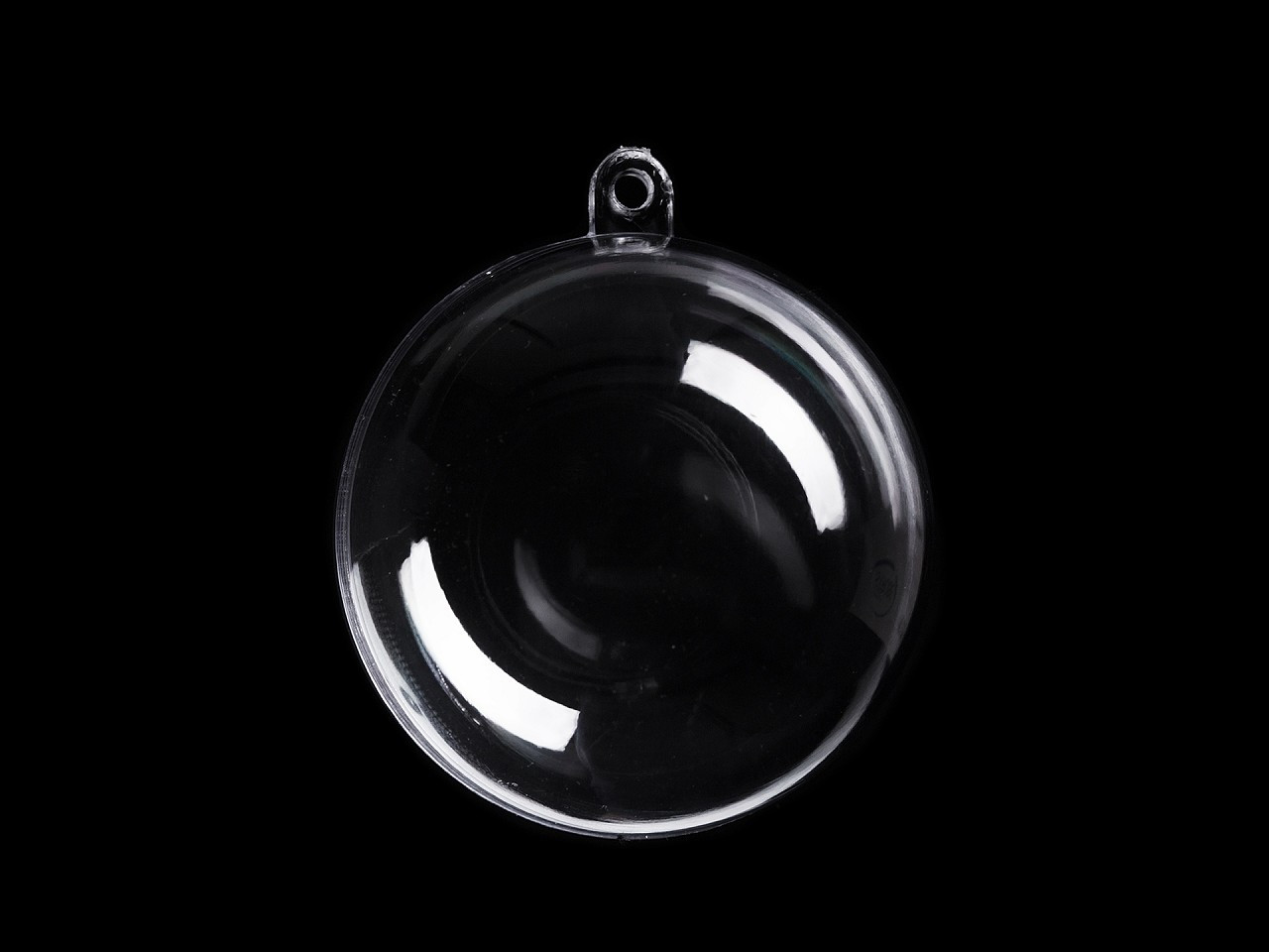 Průhledná plastová koule se skládá ze dvou částí, které se spojí a pomocí očka ji můžete pověsit jako dekoraci. Dovnitř můžete naaranžovat umělé či sušené květy, peří, kamínky apod. Koule se dá také obháčkovat nebo dekorovat ubrouskovou technikou.